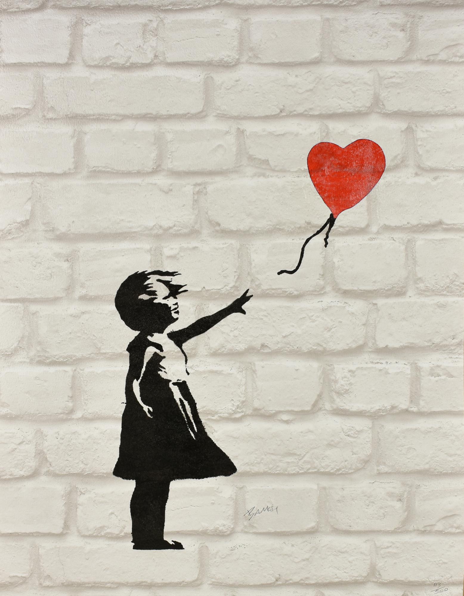 Da Banksy GIRL WITH BALLOON litografia spray 3d su carta cotton privilege, cm...