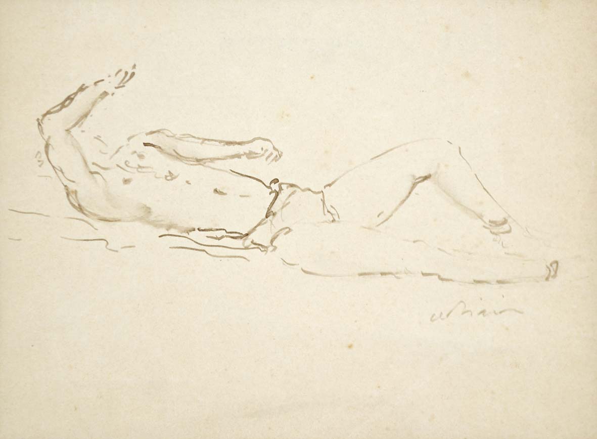 DE PISIS FILIPPO Ferrara 1896 - Milano 1956 Nudo disteso disegno ad inchiostro su carta 19,5x25,5 firma in basso a destra Autentica di Giuseppe Marchiori su foto Provenienza: già collezione Reberschak Venezia
