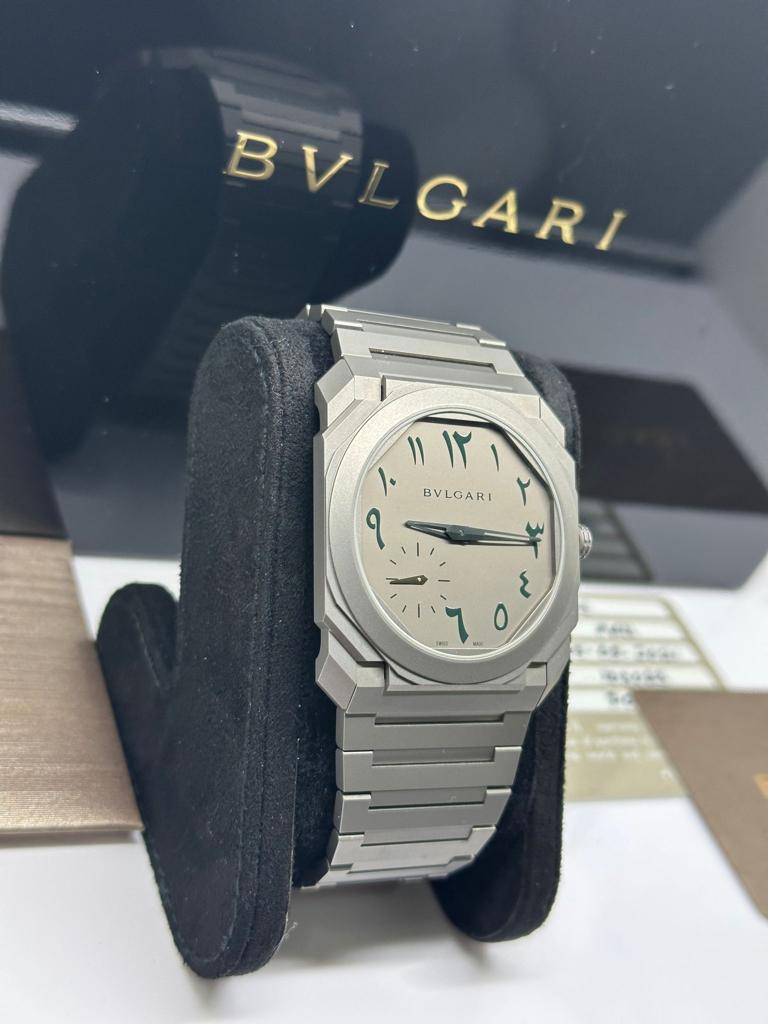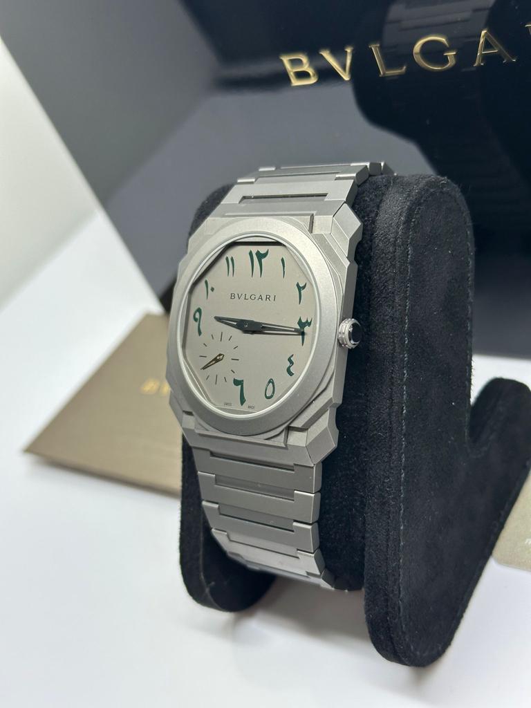 Marca Bulgari Modello (Orologio) Octo Numero di referenza 103023 Carica Automatico Materiale della cassa Titanio Materiale cinturino Titanio Condizione Nuovo Corredo Con documenti originali, scatola originale Calibro Carica Automatico Cassa Materiale della cassa Titanio Diametro 40 mm Materiale lunetta Titanio Quadrante Grigio Cinturino Materiale cinturino Titanio Colore cinturino Grigio