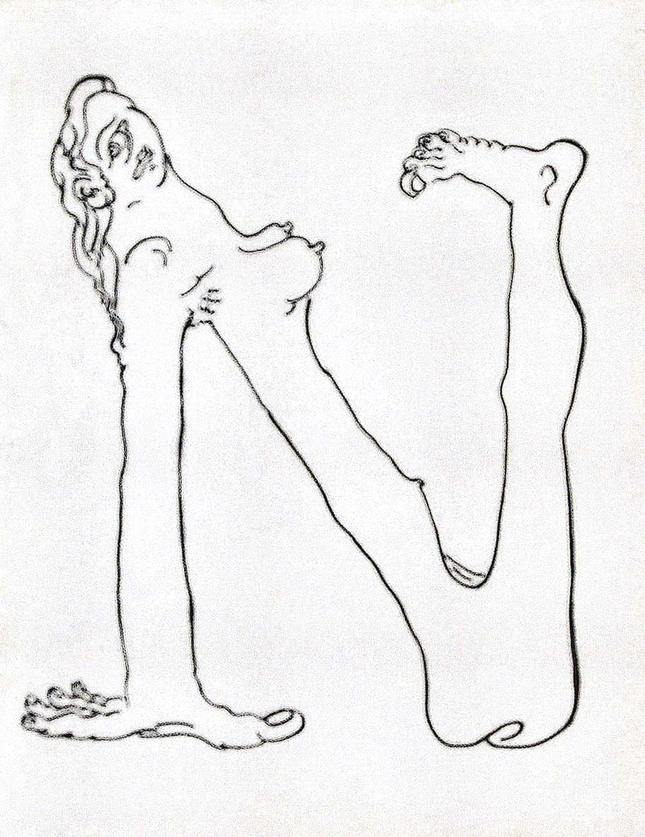SAVINIO ALBERTO Atene 1891 - Roma 1952 Figura tecnica mista su carta 27x21 firma al retro Bibliografia: Catalogo n. 130 del 1964 Libreria Antiquaria Prandi Reggio Emilia nr. 422 tav. 101 - timbro al retro questo disegno è stato eseguito quale capolettera per l'edizione del Fortini Stratagemmi d'Amore, Roma - doc. 1944