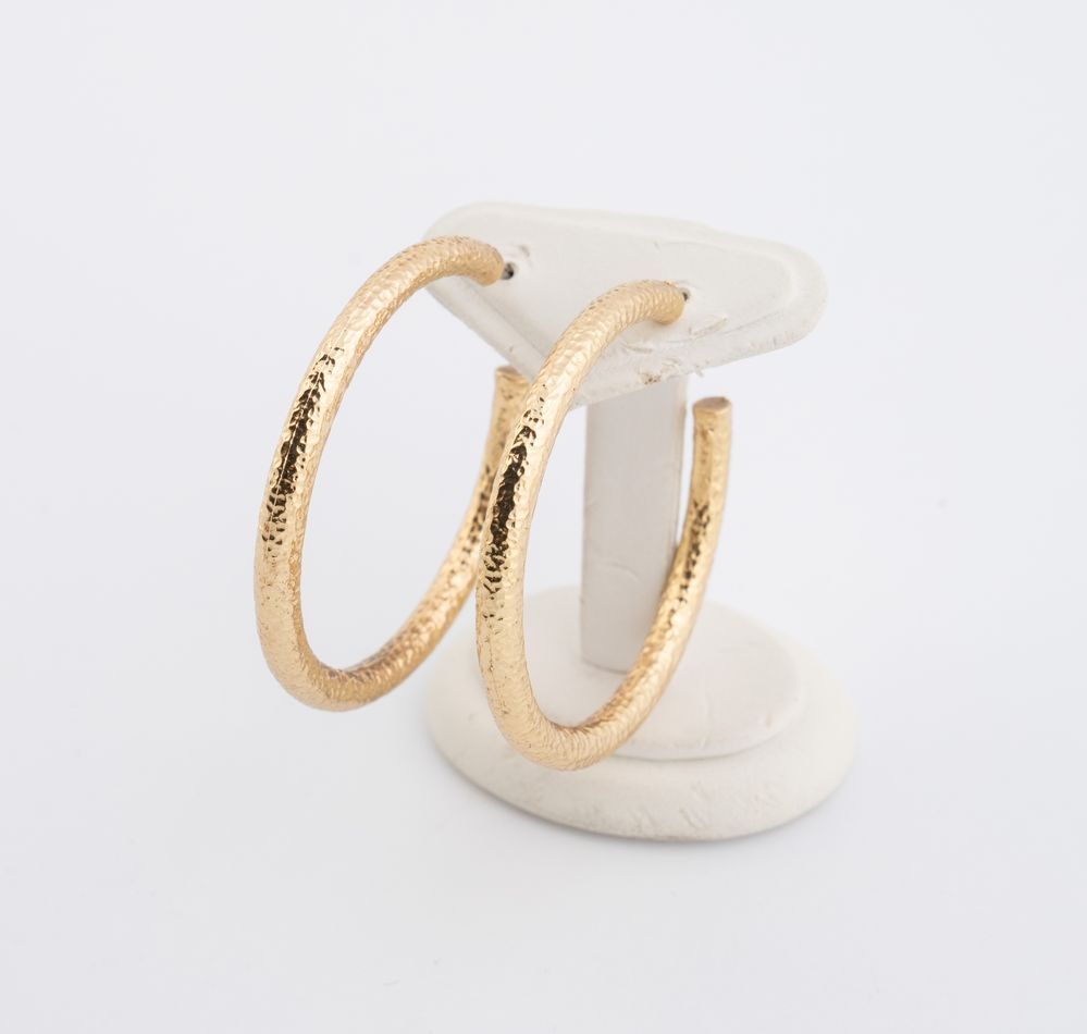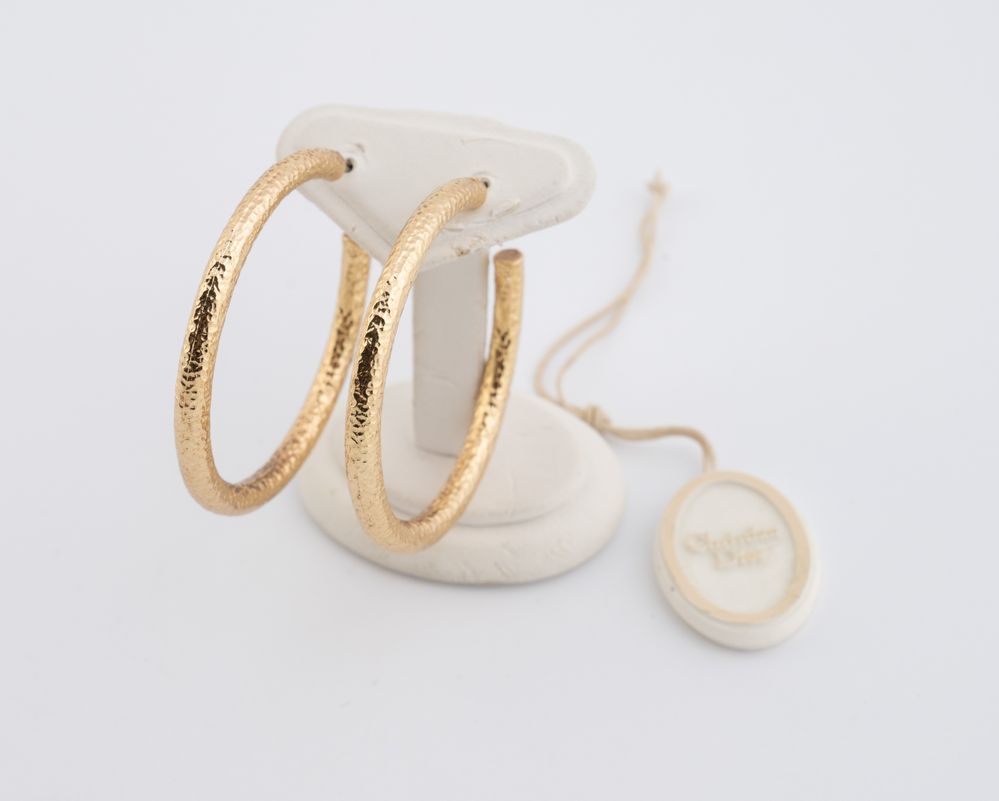 CHRISTIAN DIOR Orecchini a cerchio in metallo dorato. Cadauno di cm 4,5. Recano marchio Dior e cartellino Christian Dior.