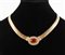 CASCIO Collier in metallo dorato con motivo centrale rifinito da una pietra rossa circordata da strass. Cm 2,5x46. Sul moschettone reca marchio Cascio Bijoux. Corredato da dustbag. (lievissimi difetti)