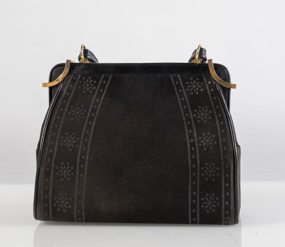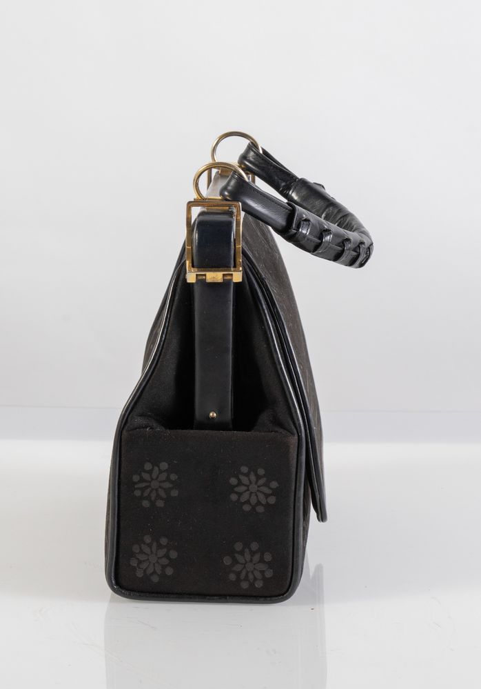 ROBERTA DI CAMERINO Borsa a mano in pelle scamosciata nera con ricami. Cm...