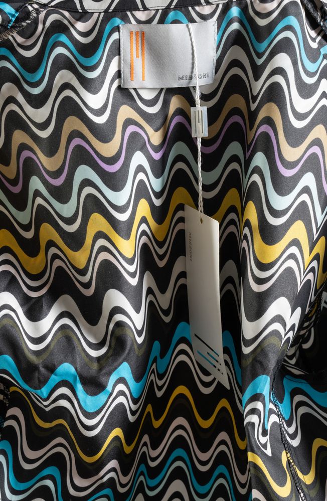 MISSONI Trench in seta a fantasia Zig Zag sui toni del nero, bianco, azzurro,...