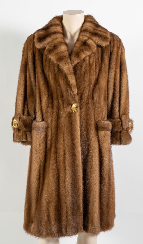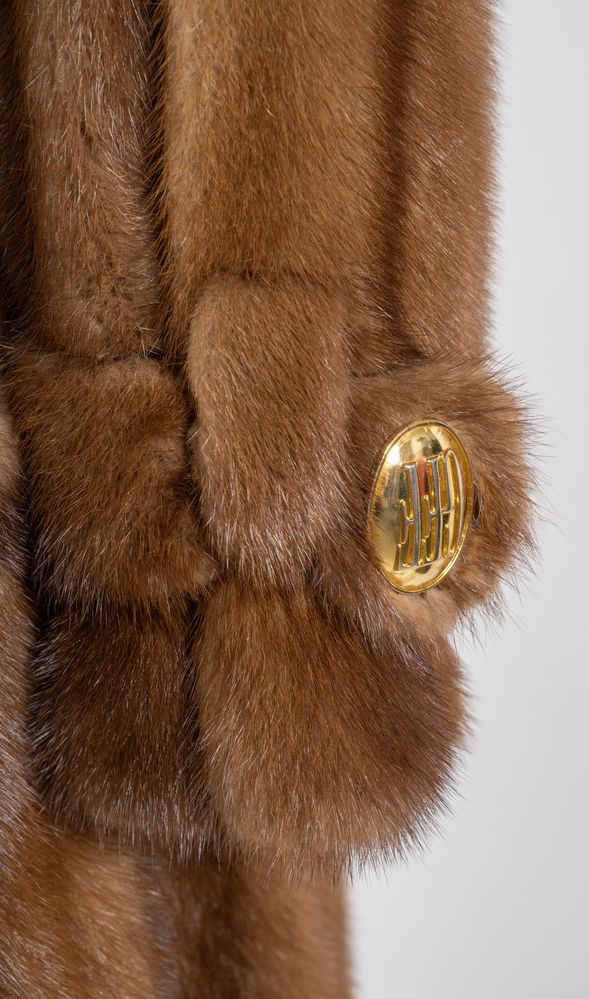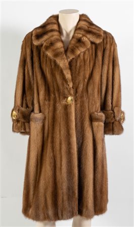 GIANFRANCO FERRÉ Pelliccia in visone con bottoni gioielli con logo GFF.