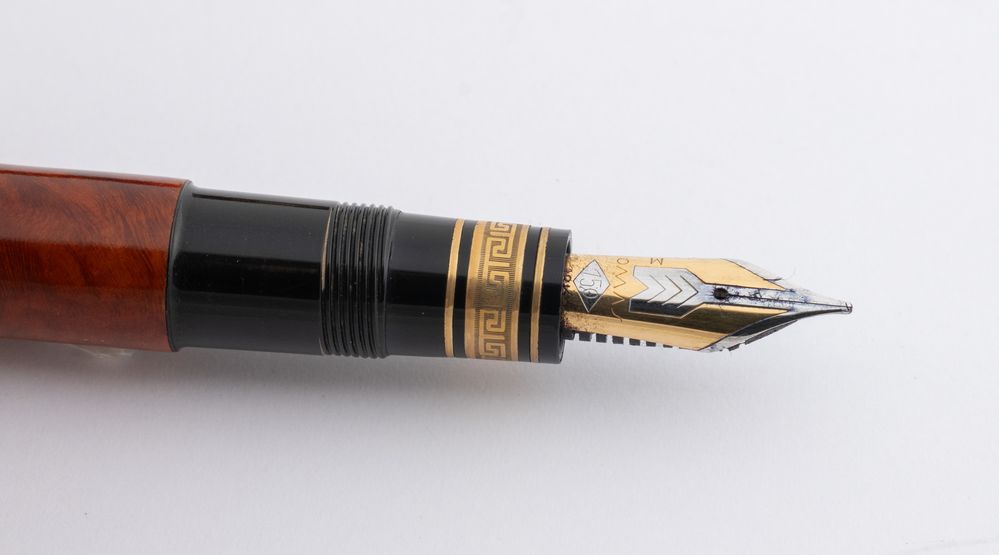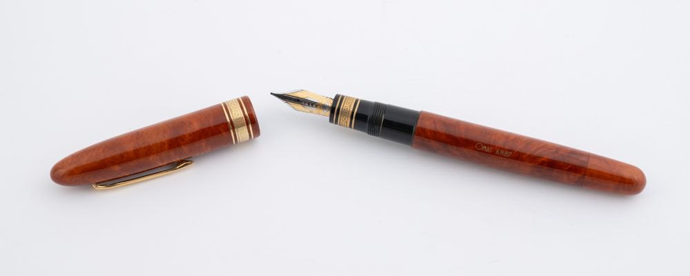 OMAS Penna stilografica modello A.M. 87. Corpo in radica di erica. Pennino...