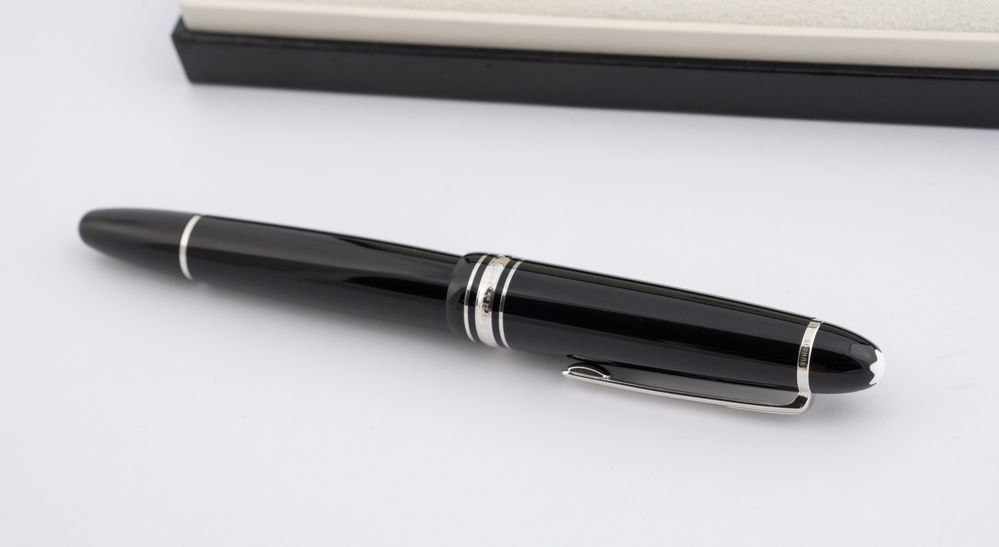Fusto in resina nera e finitura in metallo argentato. Il pennino è in oro 14kt, sui cui è inciso il numero 4810 e sotto la M di Montblanc all'interno del logo a forma di stella. Il cappuccio è sormontato dall'emblematica stella bianca e contornato da un anello con inciso "Montblanc-Meisterstuck-Pix". La chiusura è a vite e la carica è a stantuffo. Lunghezza: cm 15. Corredata da scatola.
