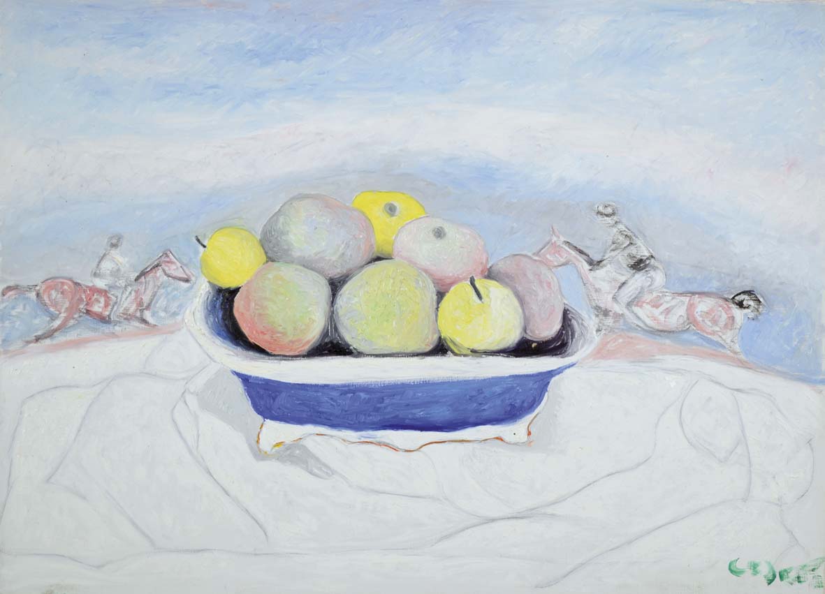 CESETTI GIUSEPPE Tuscania 1902 - Viterbo 1991 Natura morta con fantini 1968 olio su tela 50x70 firma in basso a destra firma e data al retro Esposizioni: Galleria la Chiave Mestre - timbro al retro