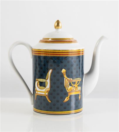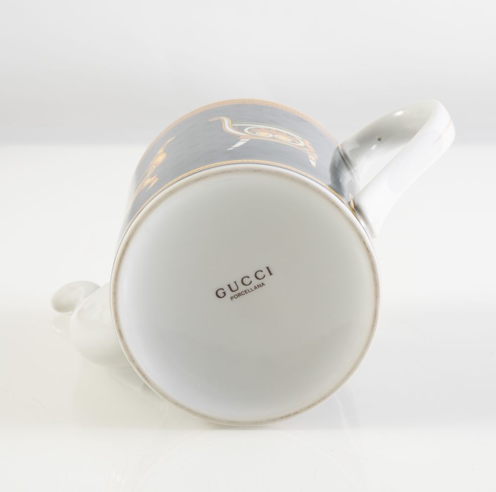 GUCCI Teiera in porcellana decorata in policromia e con finitura dorata. Anni...