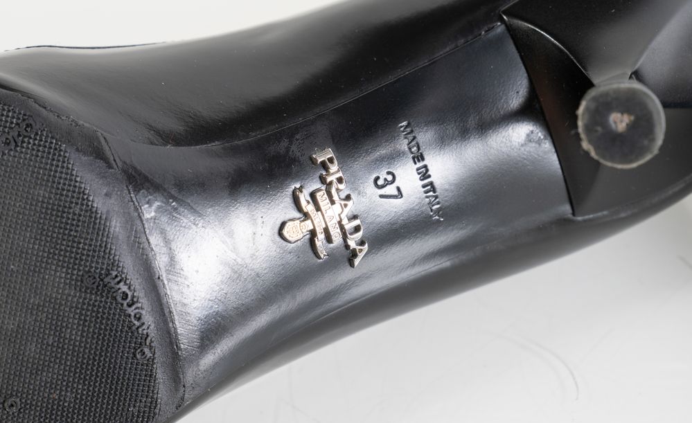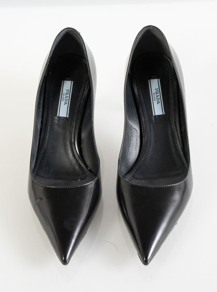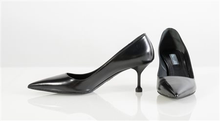 PRADA Scarpe décolleté in pelle nera. Taglia 37. Tacco cm 6,5. Suole Vibram. Recano ricambi per il tacco. Corredate da dustbag.