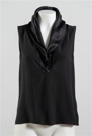 CHANEL Blusa in seta nera. Collezione Autunno 2008. Taglia FR 38. Composizione 100% seta. Reca etichette Chanel, Made in Italy e marchio CC.