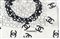 CHANEL Foulard in seta a fantasia sui toni del bianco, del nero e del grigio. Cm 64x69. Composizione: 100% seta. Reca marchi CC, Chanel, Made in Italy.