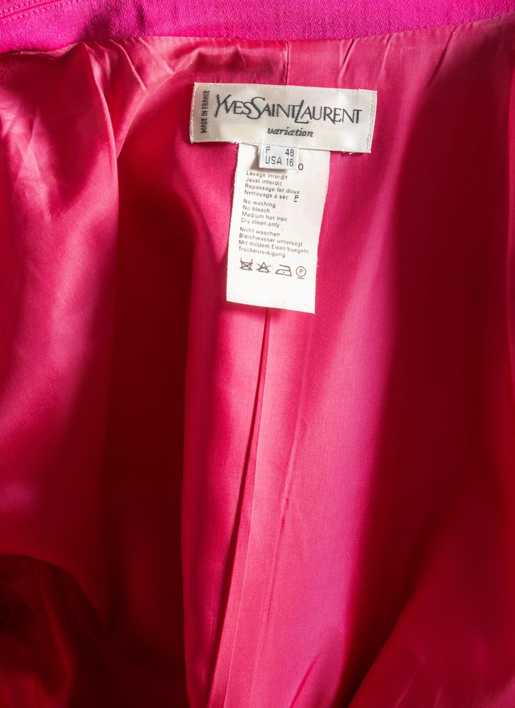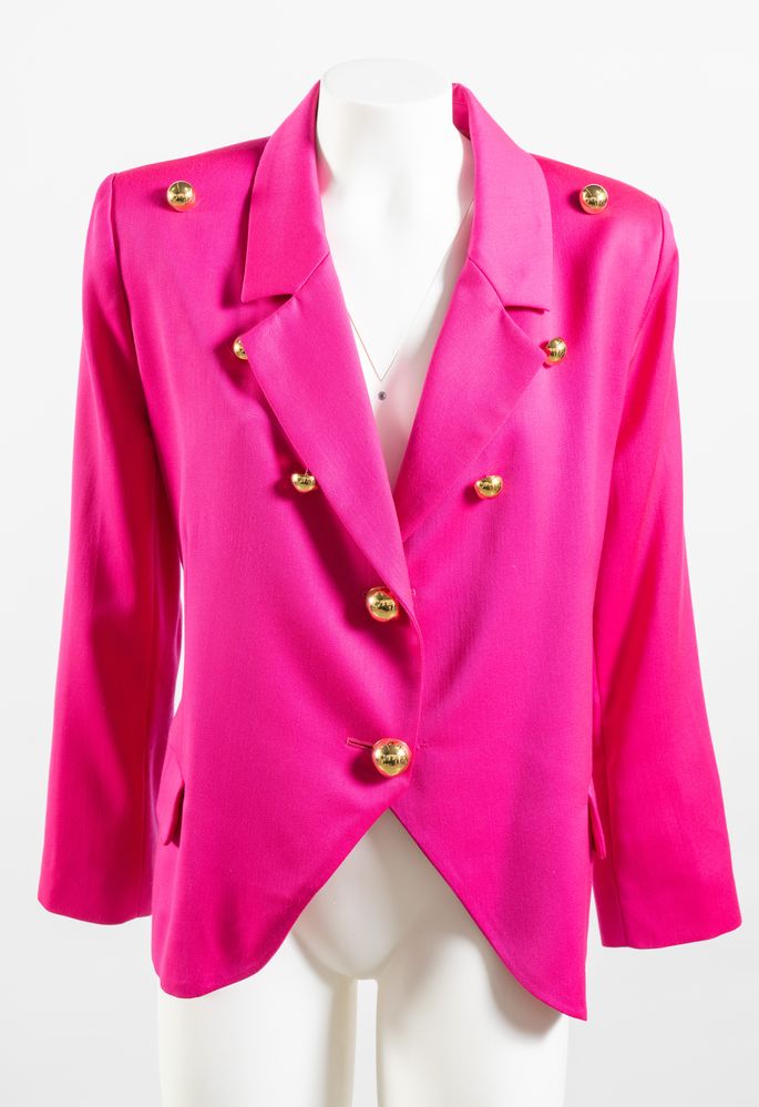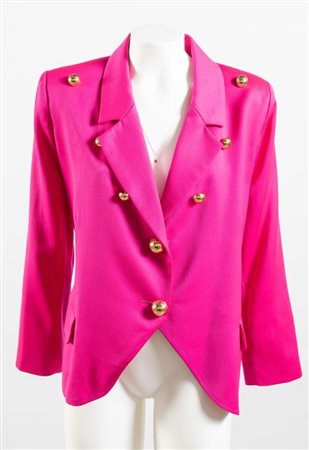 YVES SAINT LAURENT Variatíon Giacca sui toni del rosa con bottoni in metallo dorato. Riporta taglia F 48 USA 16. Reca etichetta Yves Saint Laurent Variatíon Made in France.