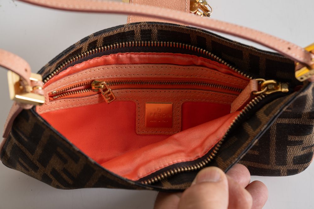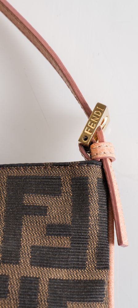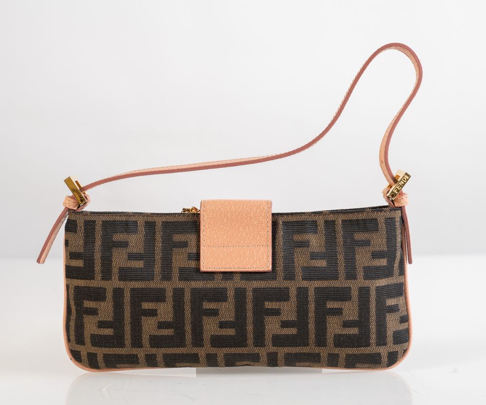 FENDI Borsa in tela Zucca monogram con dettagli in pelle rosa pesca, dettagli...