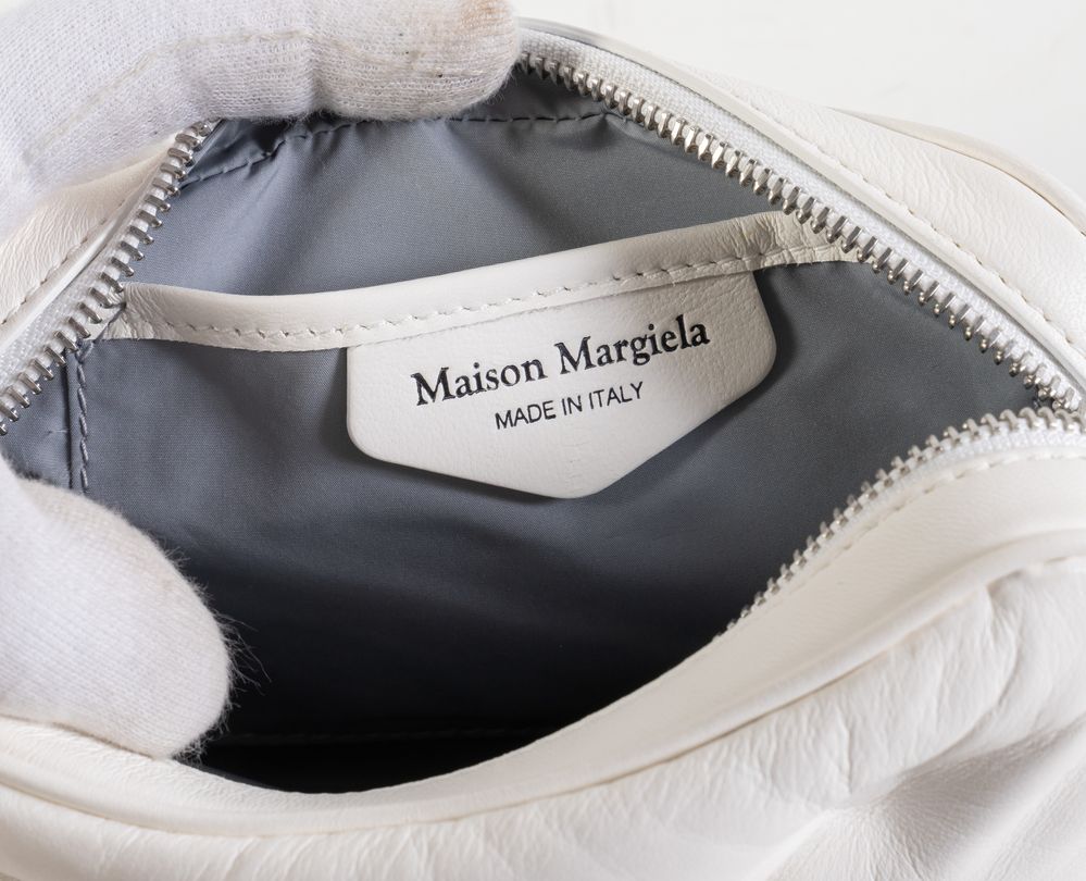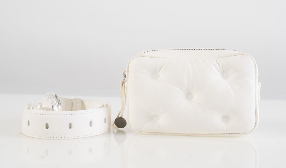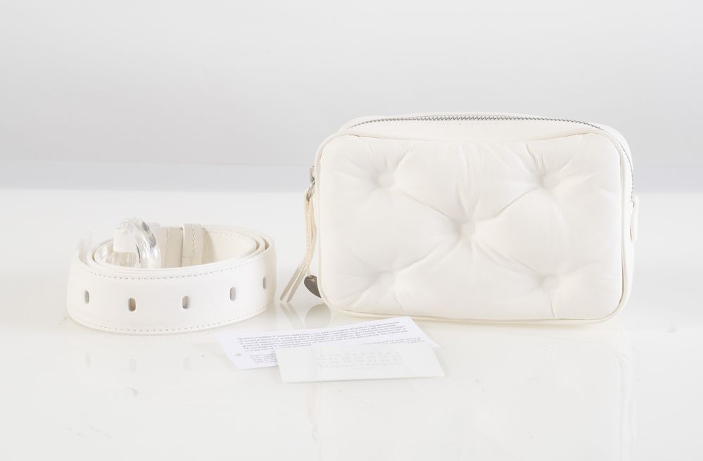 MAISON MARGIELA Marsupio Glam Slam in nappa bianca trapuntata. Cm 11x18x4,5; cintura cm 5x108. All'interno reca una tasca. Reca marchio ed etichetta Maison Margiela, Made in Italy e certificato di autenticità. Corredato di dustbag. (nuovo)