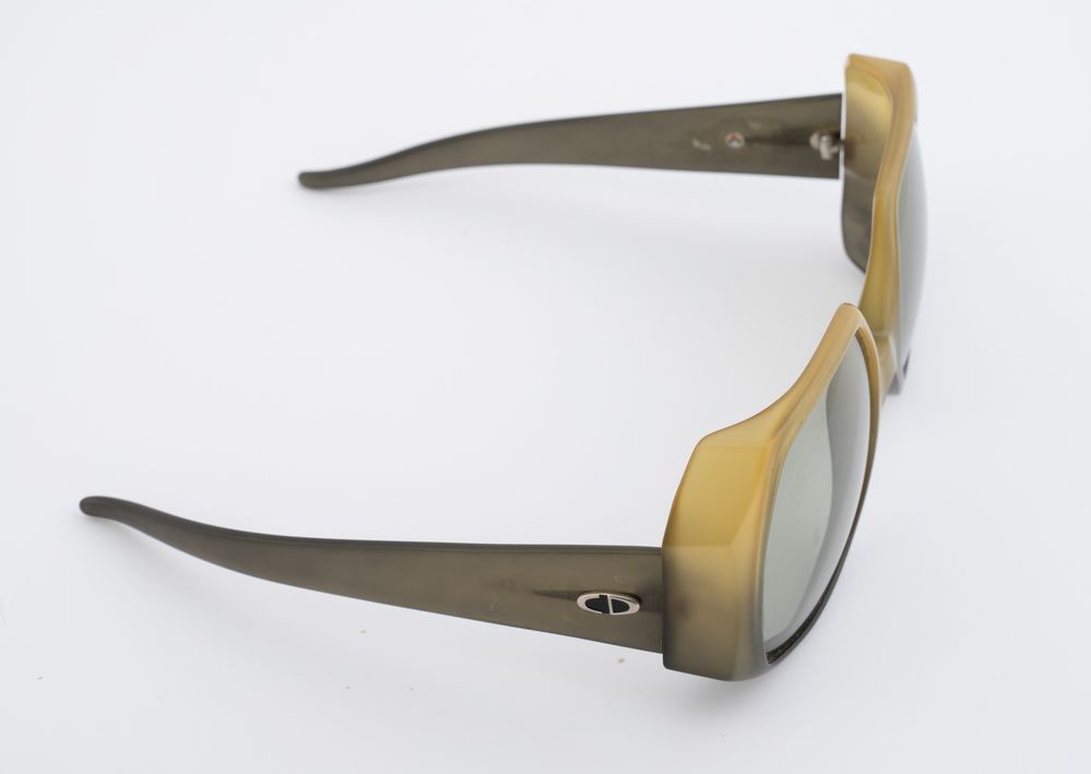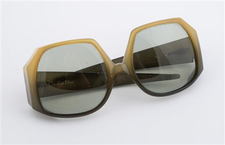 CHRISTIAN DIOR Occhiali da sole. Anni '80. Montatura sfumata sui toni del verde. Recano marchi Christian Dior e CD.