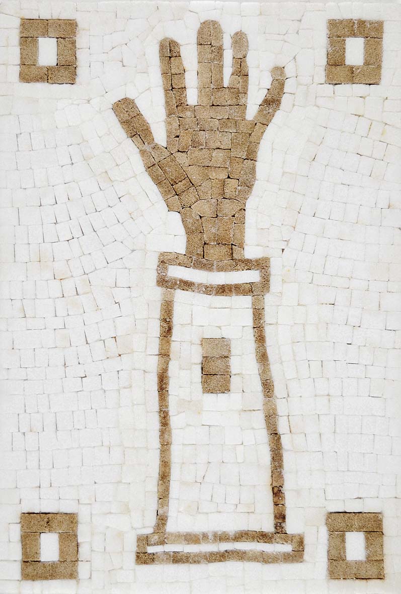 MONDINO ALDO Torino 1938 - 2005 Reliquerizia 1995 zucchero su tavola 59x40x4 firma data e titolo al retro Autentica dell'Archivio Aldo Mondino nr. Inv. 20080421224936 su foto