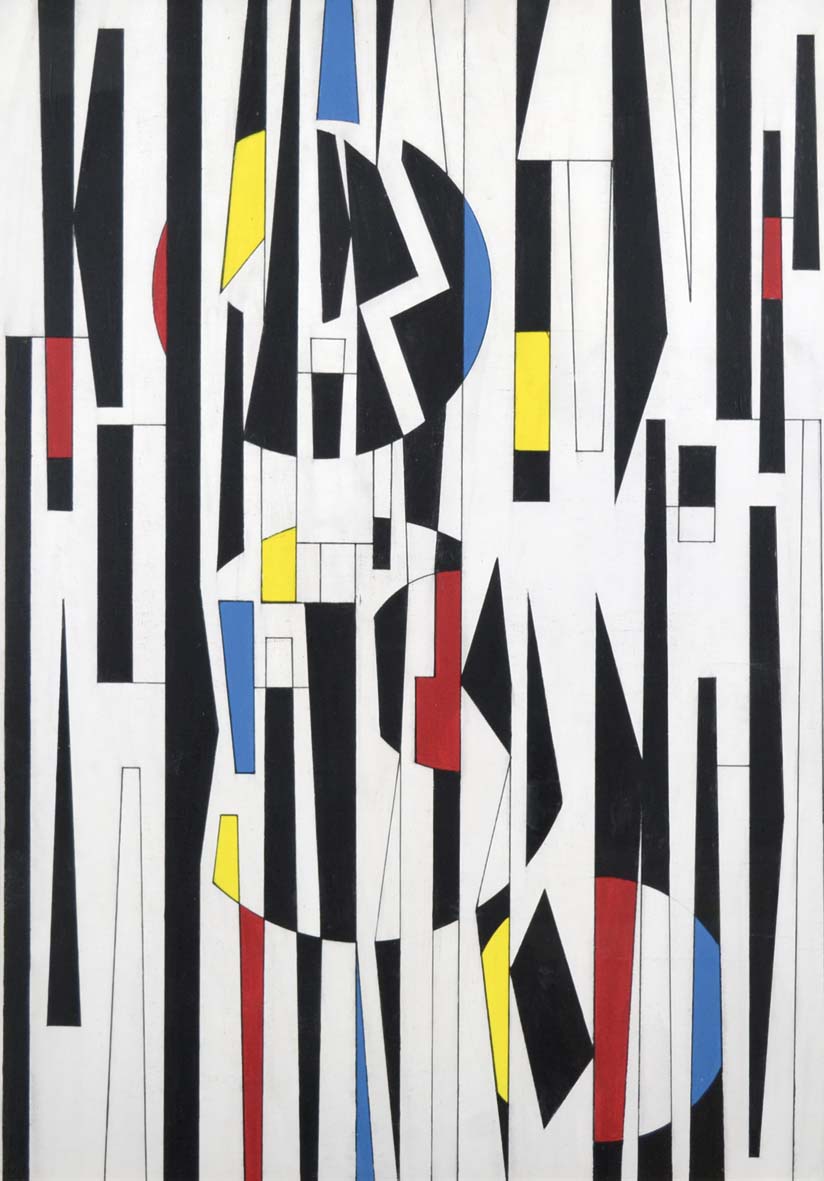 CRIPPA ROBERTO Milano 1921 - Bresso (Mi) 1972 Geometrico 1950 olio su tavola 70x49,5 firma e data al retro Autentica del figlio Roberto Crippa su foto