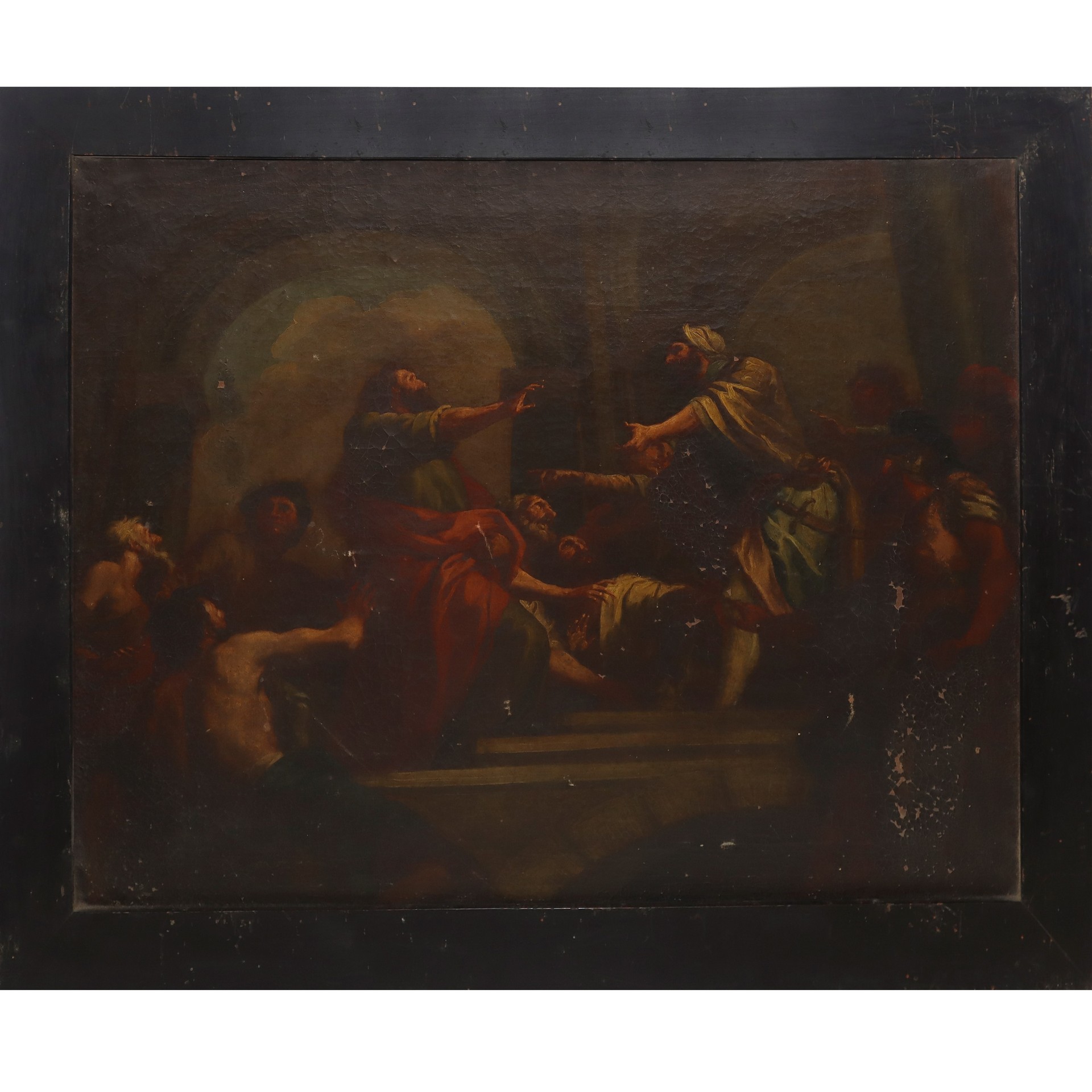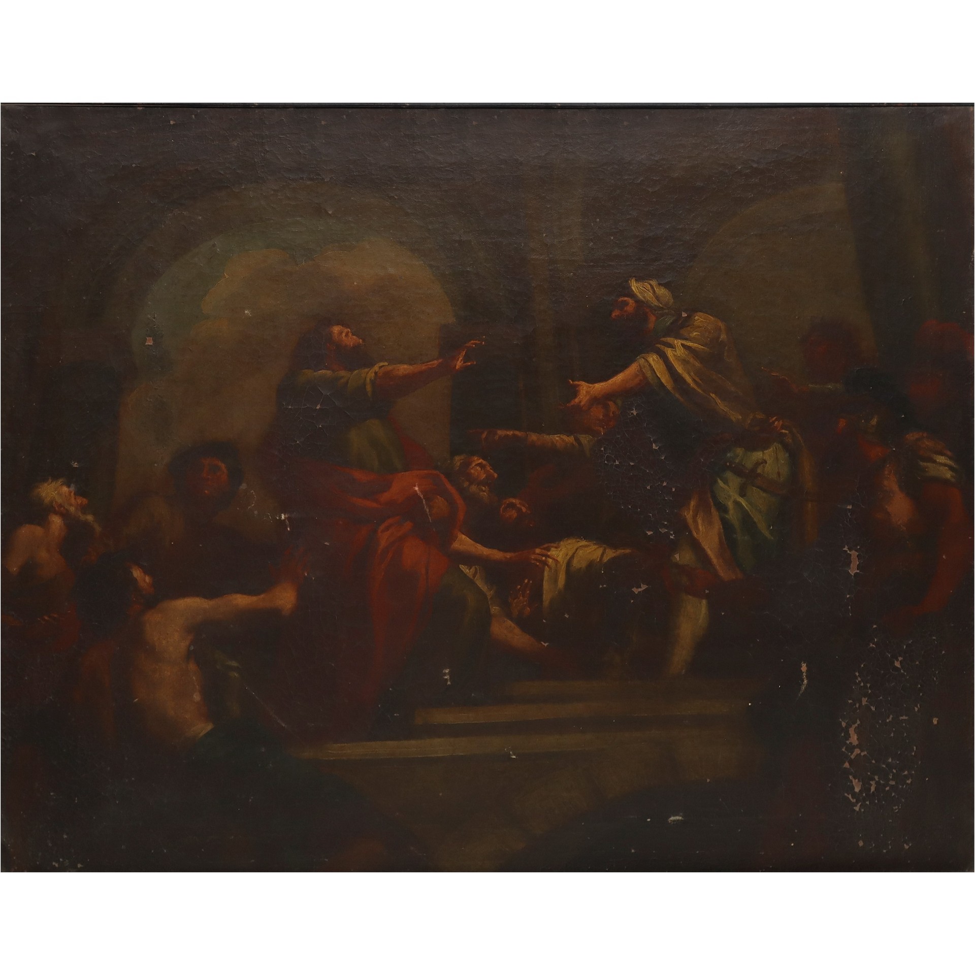 Scena Biblica raffigurante la guarigione del servo del Centurione di Cafarnao, 17th/18 Secolo Cm 60x75, in cornice 70x85 Cadute di coloreCadute di colore
