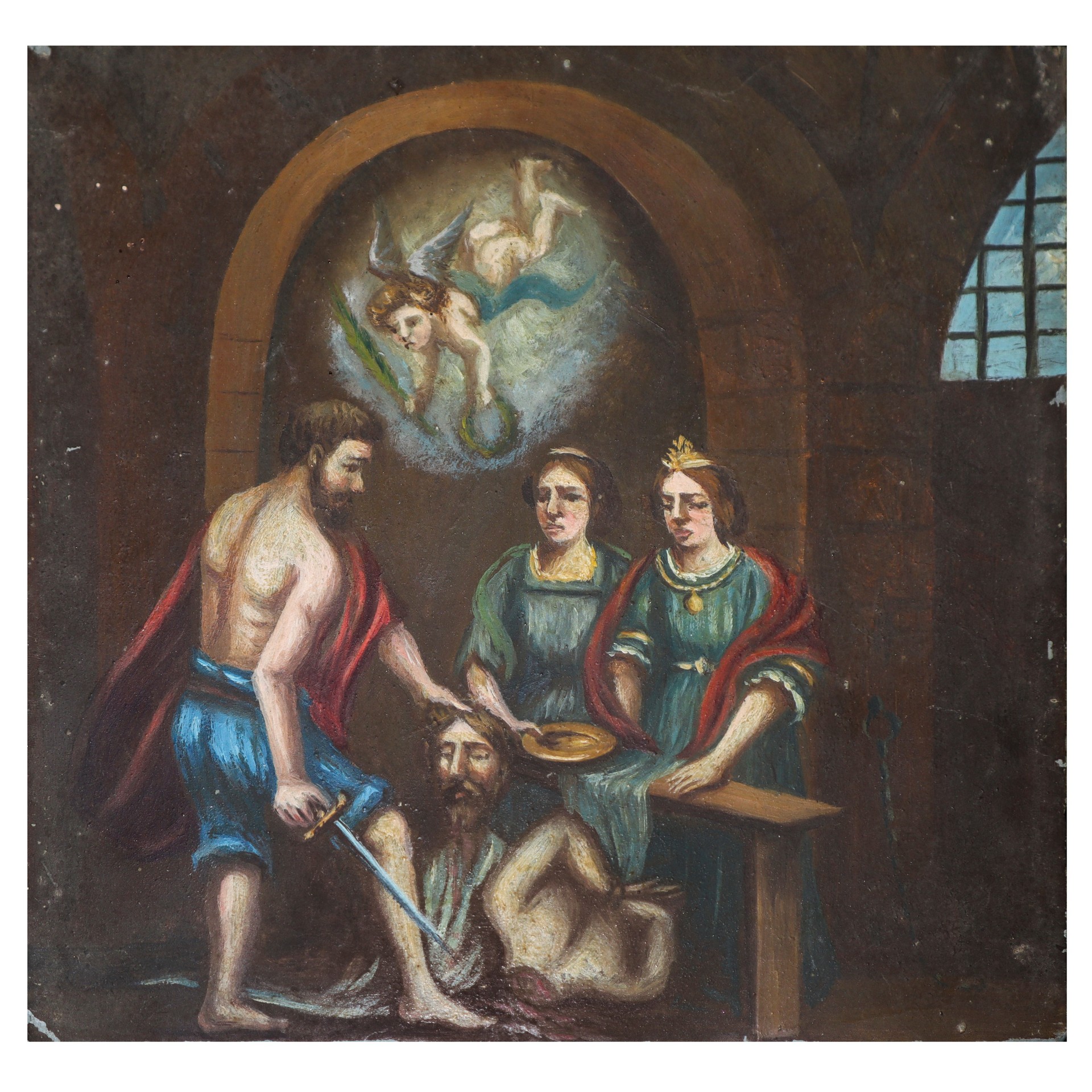 Decollazione S. Giovanni Battista, 19 Secolo Cm h 26 x 28 Olio su zinco