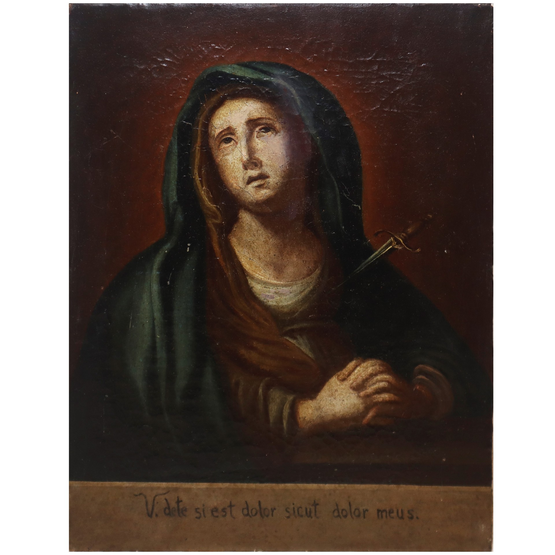 Madonna addolorata, Early 20 Secolo Cm 30 x 24 Olio su masonite