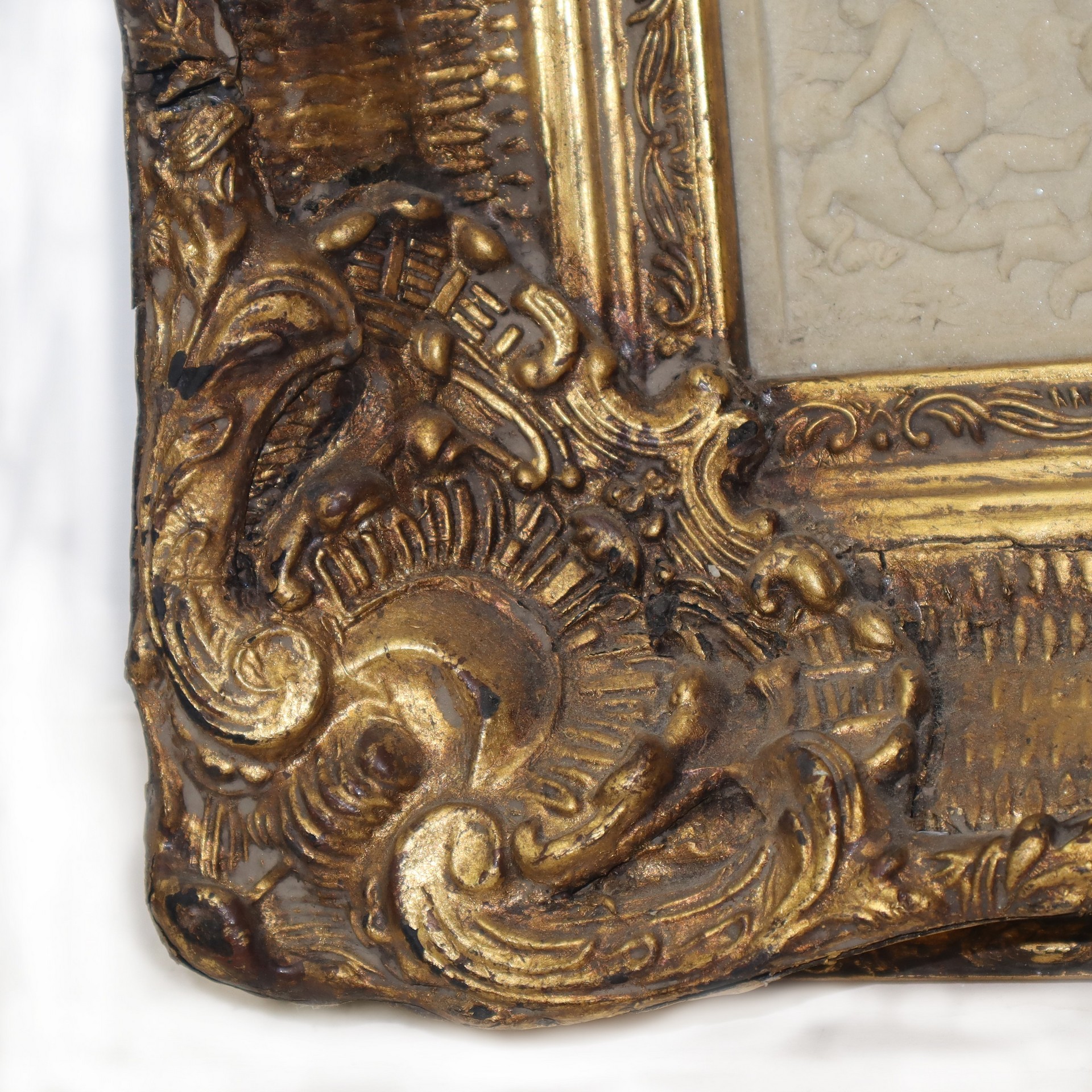 Bassorillievo raffigurante gioco di putti Cm 11 x 16 in cornice cm 32 x 37 Polvere di marmo e resinaPolvere di marmo e resina