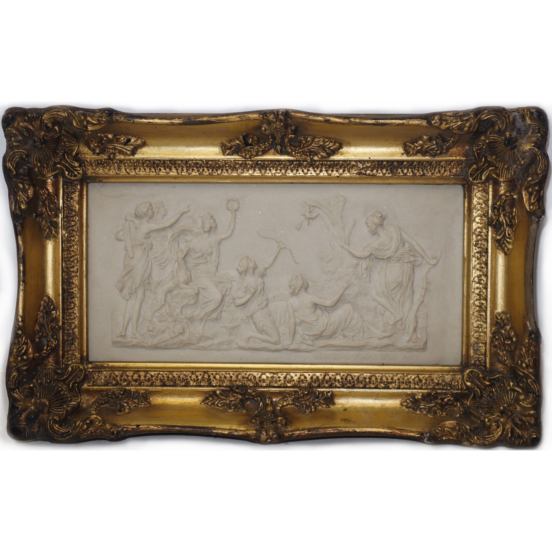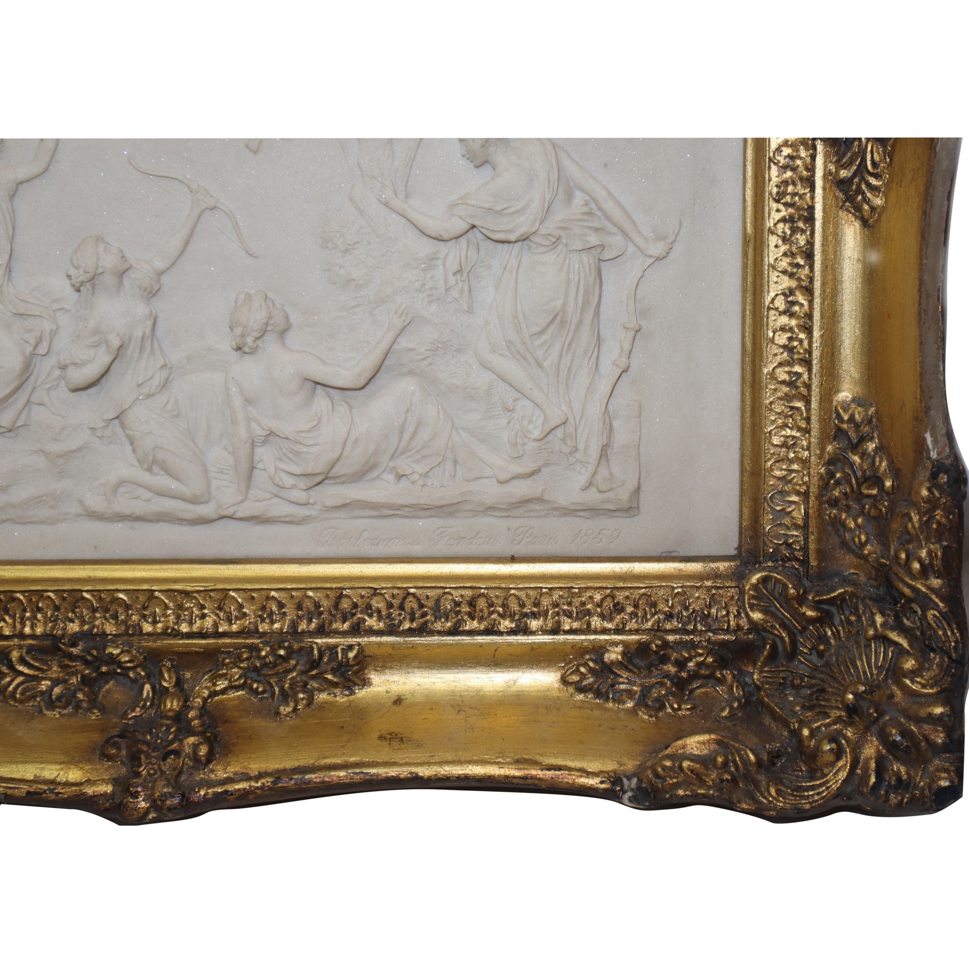 Barbedienne Fondeur (Paris 1859) - Bassorilievo raffigurante scena di caccia, Diana e le ninfe in cornice dorata