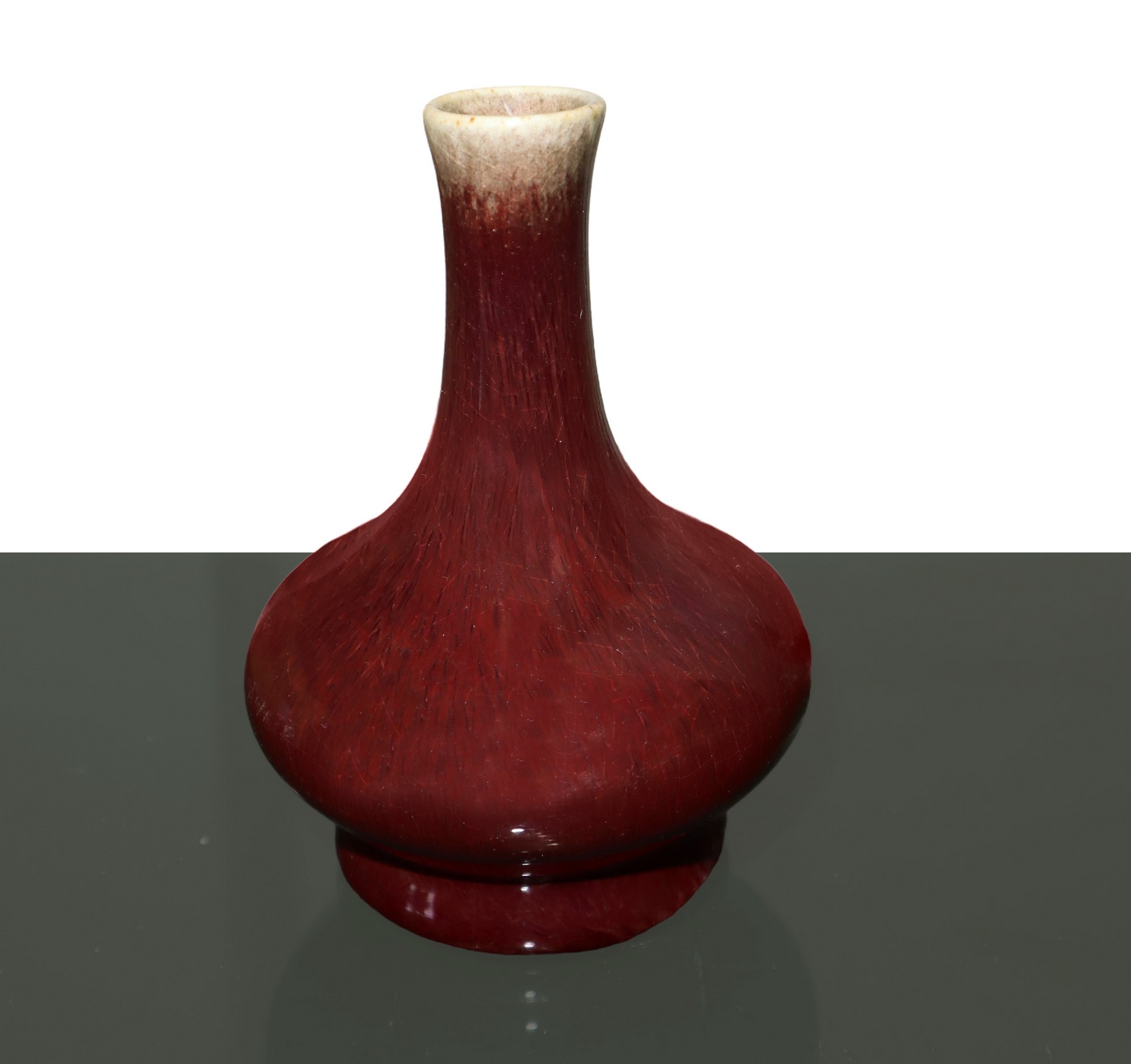 Vaso e sciacquapennelli in porcellana monocroma “SANG DE BEOUF ”, China, Qing Dynasty, 19 Secolo sciacquapennelli cm 11 x 8, vaso cm 6,5 x 9,5