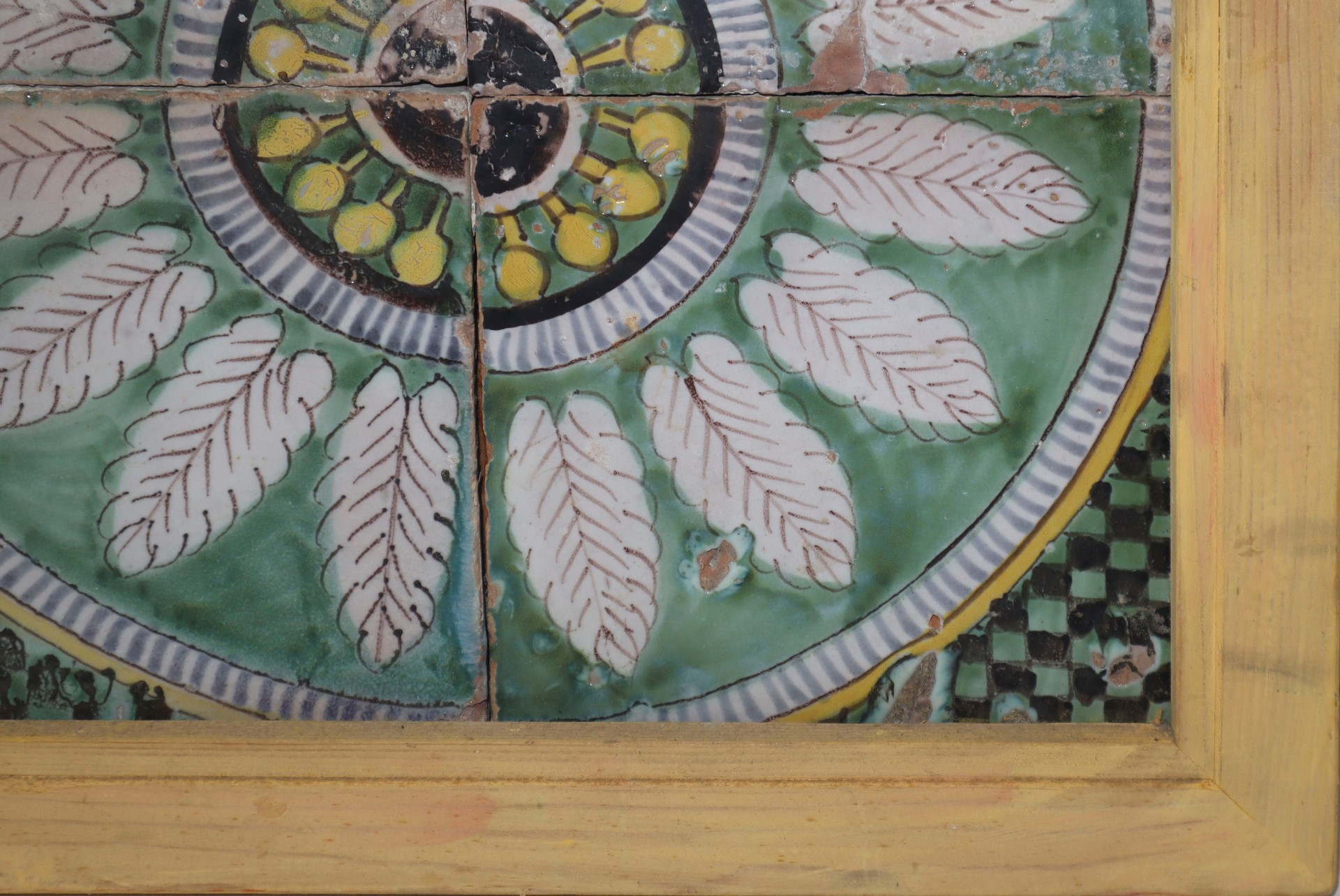 Composizione da muro, trittico di n. 4 maioliche, Late 19 Secolo H cm 47 x 47 Raffigurante cerchio con foglie d'Acanto Raffigurante cerchio con foglie d'Acanto