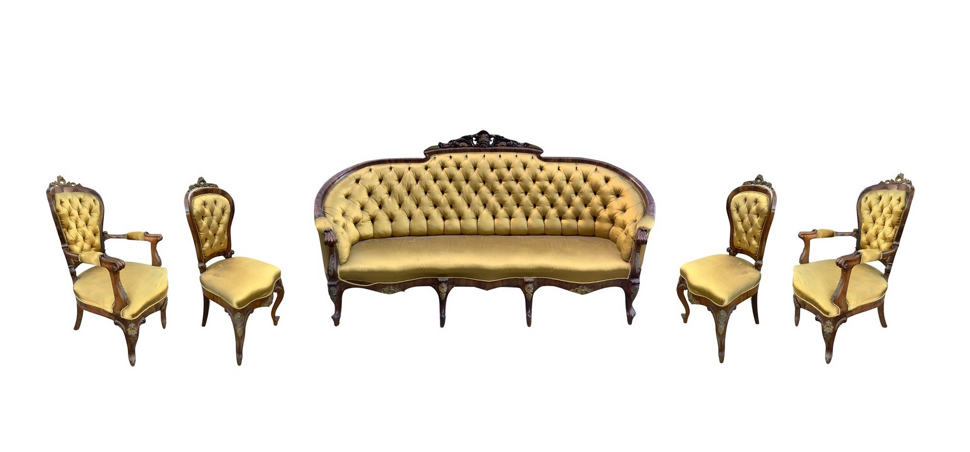 Salotto Luigi Filippo composto da divano in legno di palissandro, due poltrone e due sedie., nineteen century