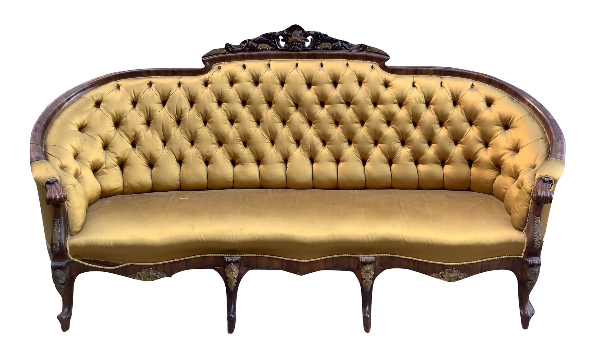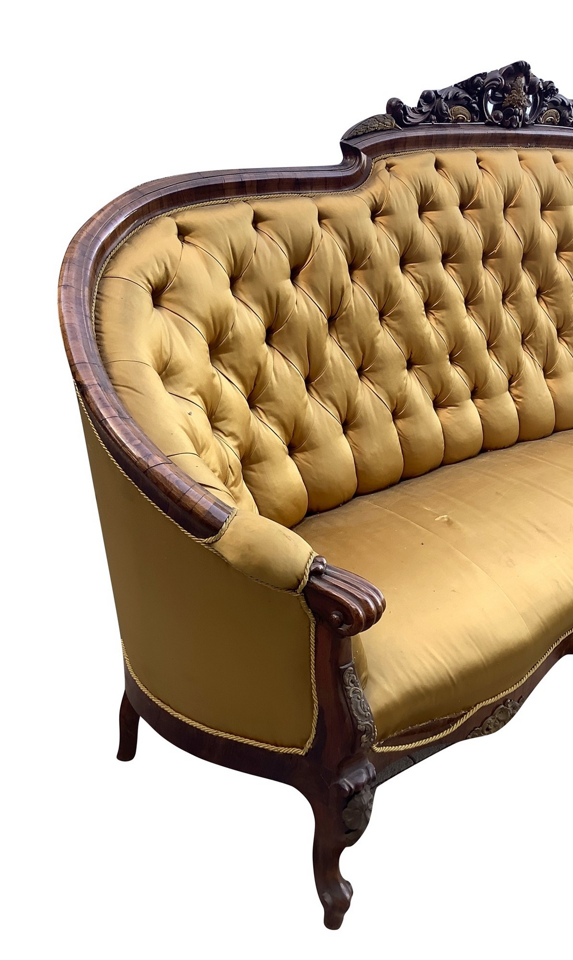 Salotto Luigi Filippo composto da divano in legno di palissandro, due poltrone e due sedie., nineteen Secolo H137 x L 258 x p 75 cm