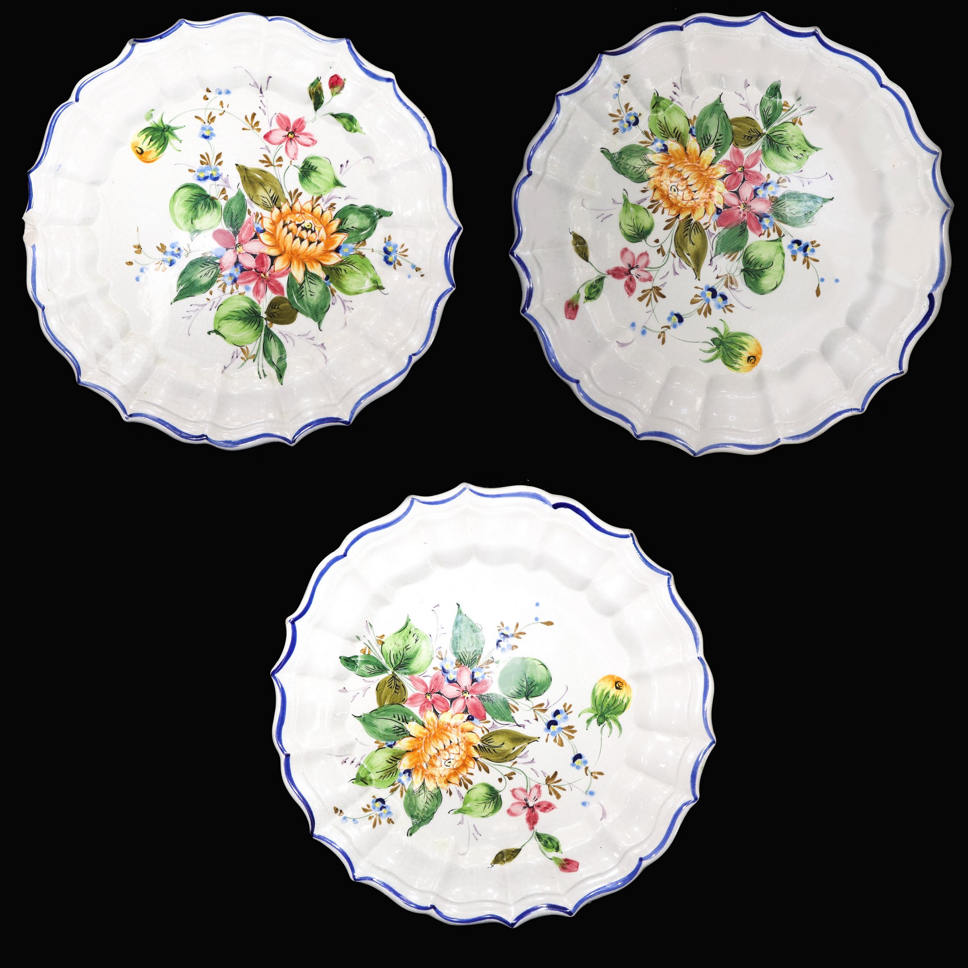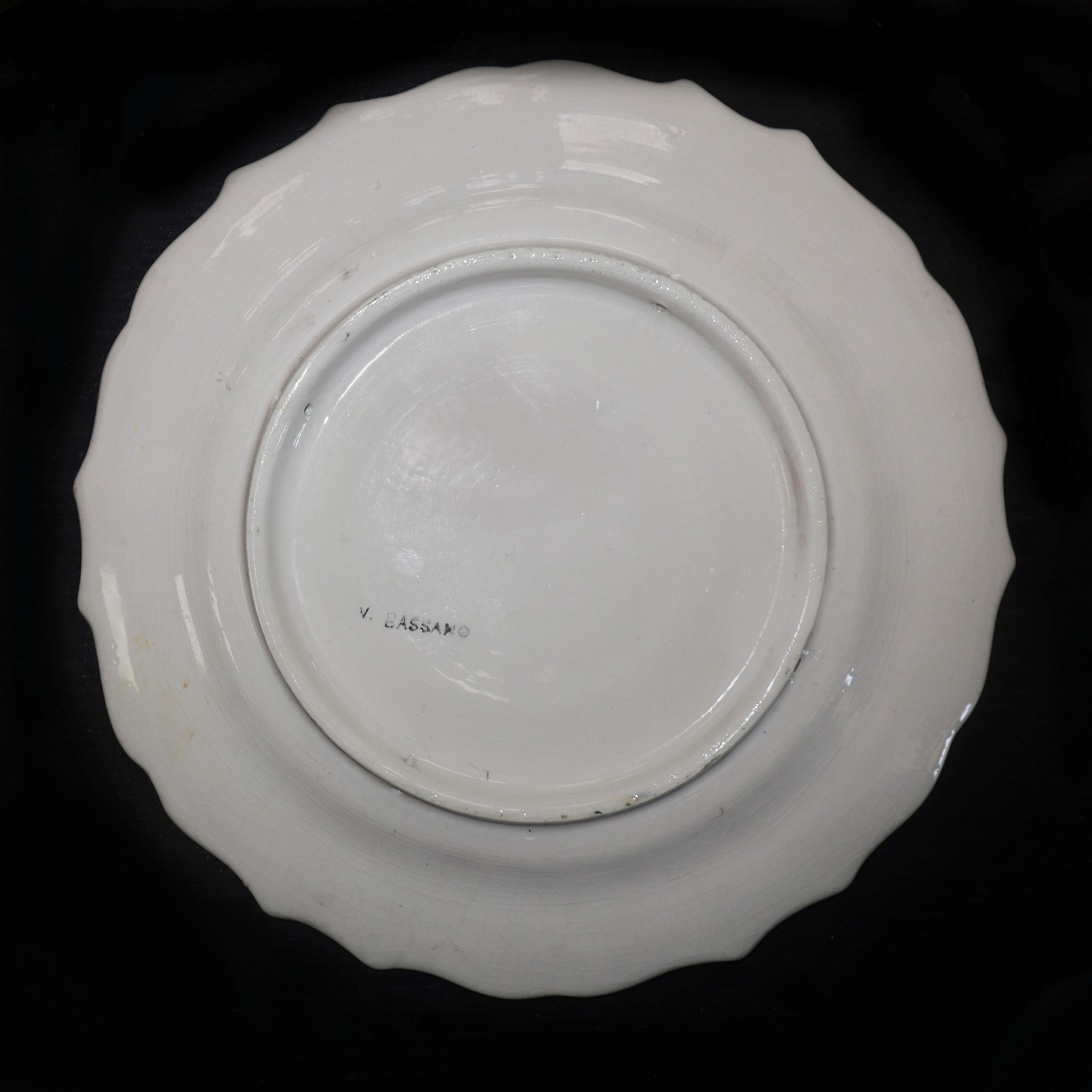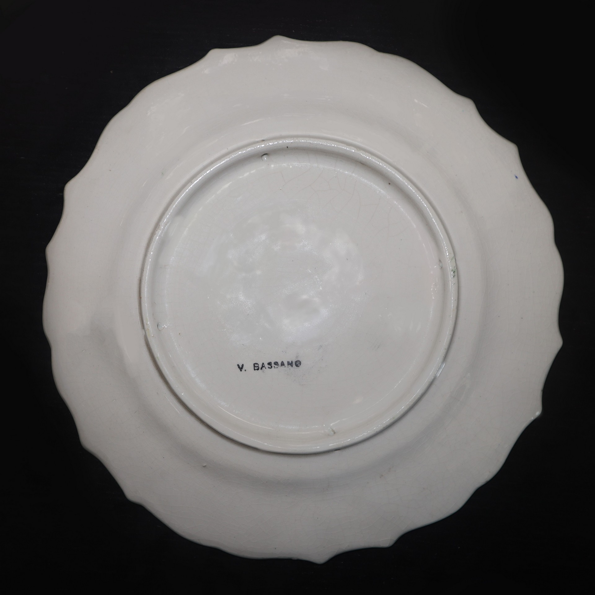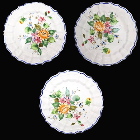 Ceramiche Bassano (Bassano del grappa) - N. 3 piatti da muro in porcellana, Early 20 Secolo D cm 25 Bordo a crespino. Dipinti con decori floreali. Timbrati sul retro. Un piatto sbeccatoBordo a crespino. Dipinti con decori floreali. Timbrati sul retro. Un piatto sbeccato