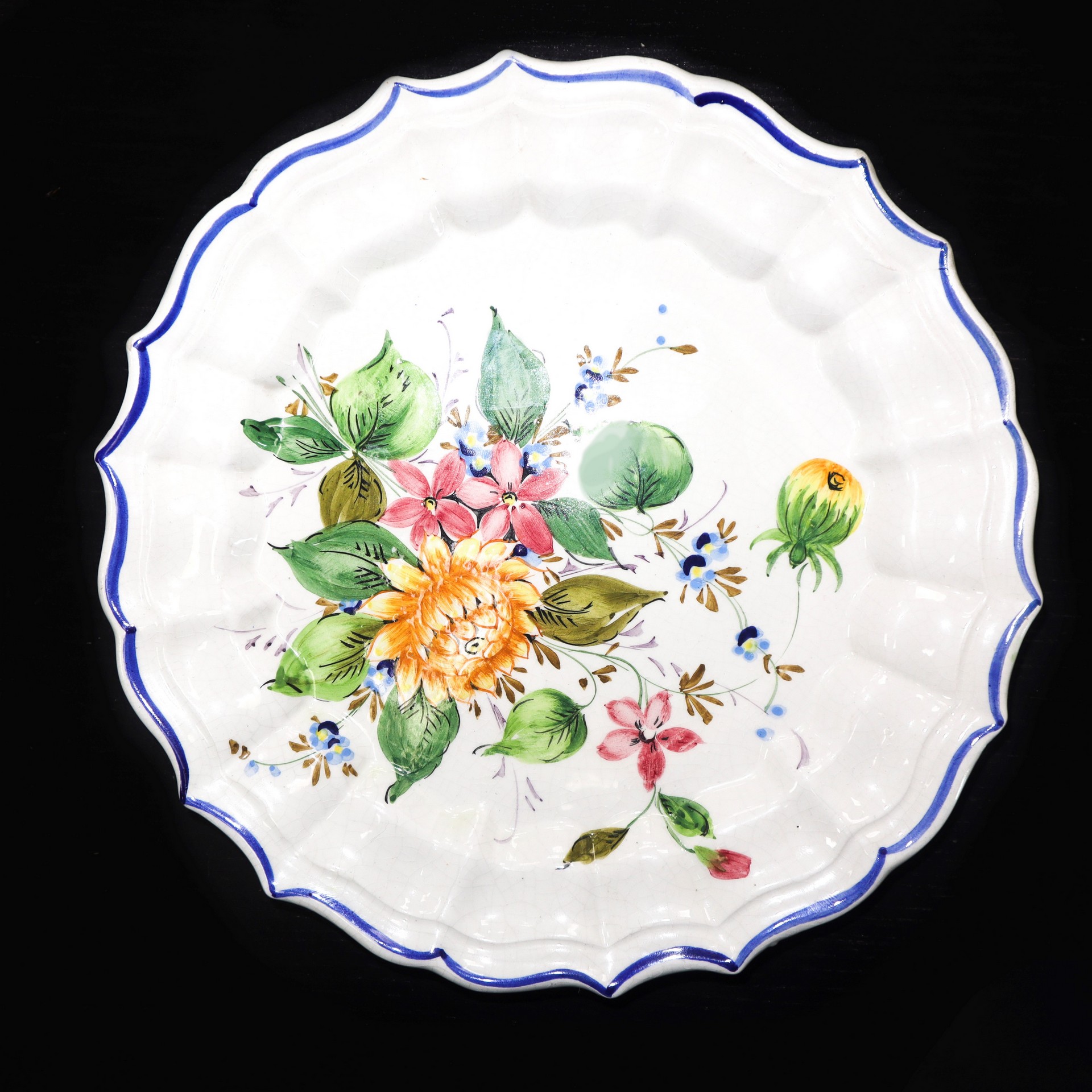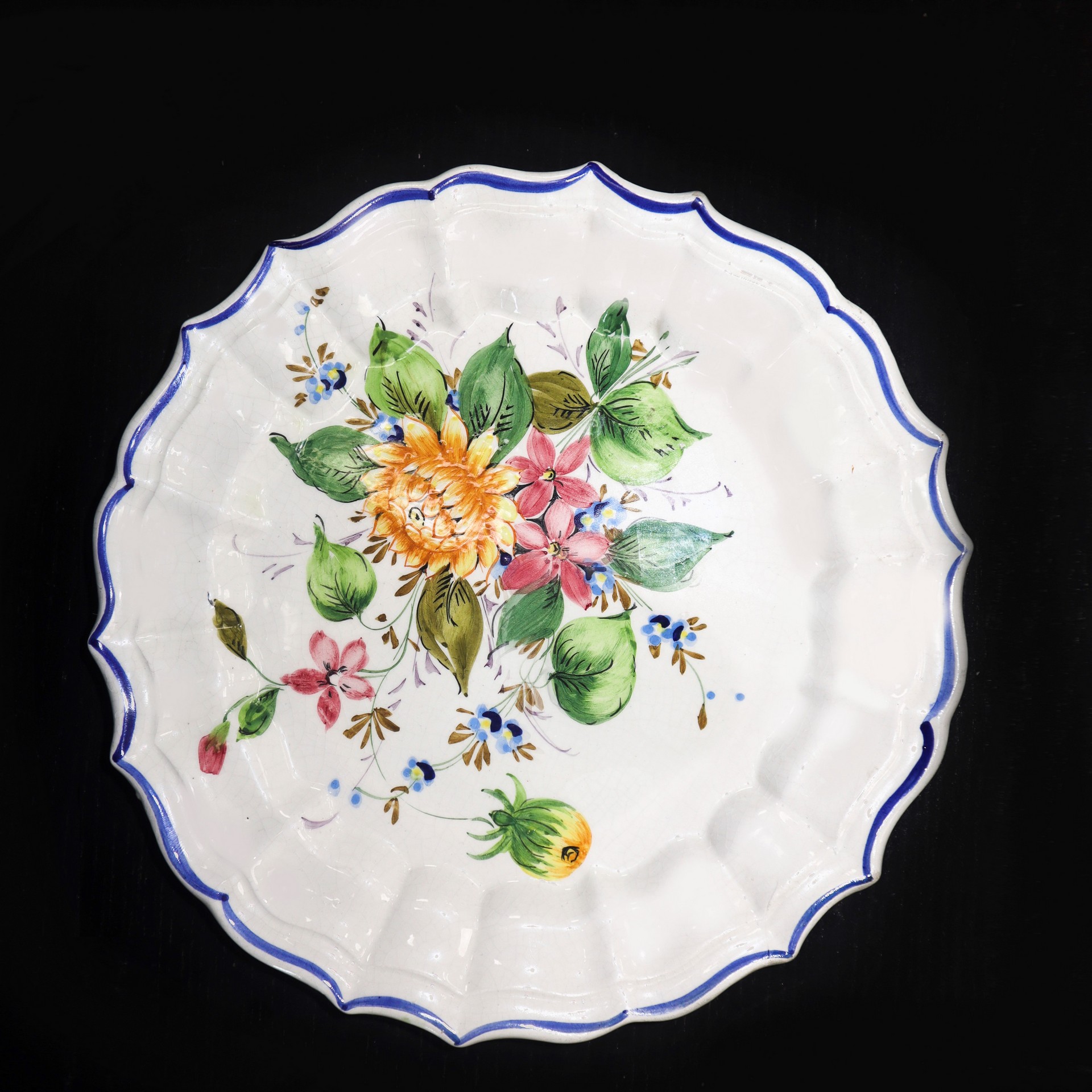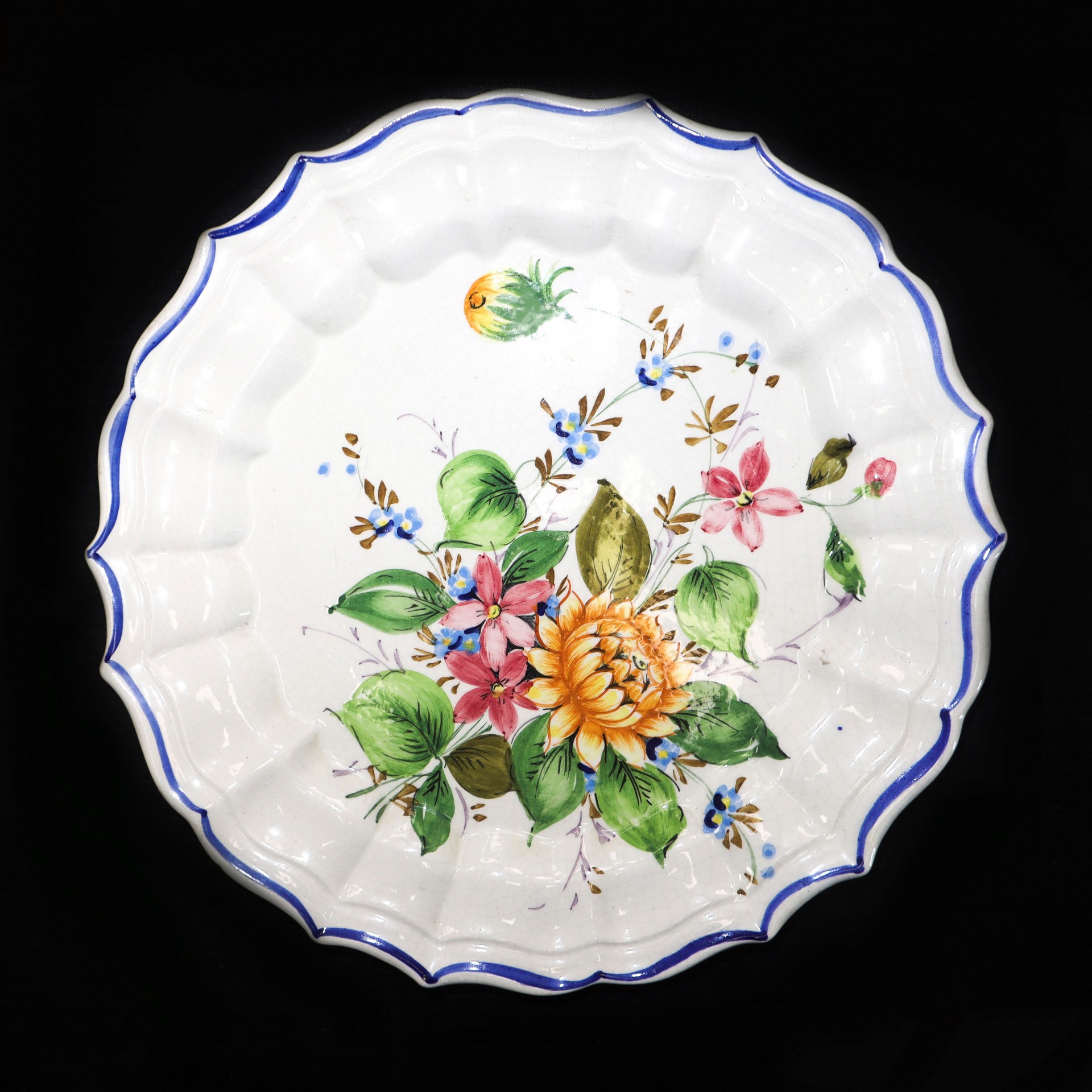 Ceramiche Bassano (Bassano del grappa) - N. 3 piatti da muro in porcellana, Early 20 Secolo D cm 25 Bordo a crespino. Dipinti con decori floreali. Timbrati sul retro. Un piatto sbeccatoBordo a crespino. Dipinti con decori floreali. Timbrati sul retro. Un piatto sbeccato