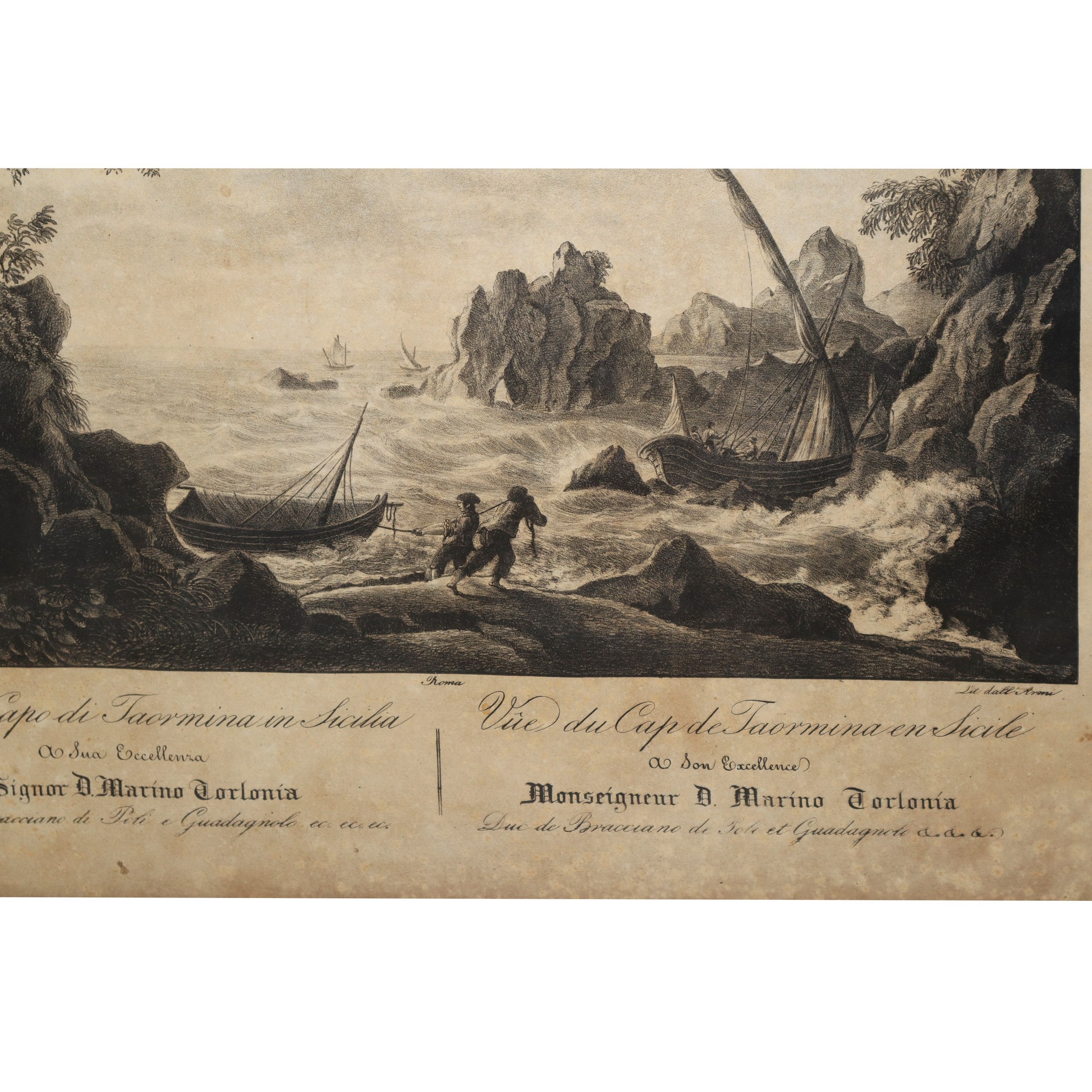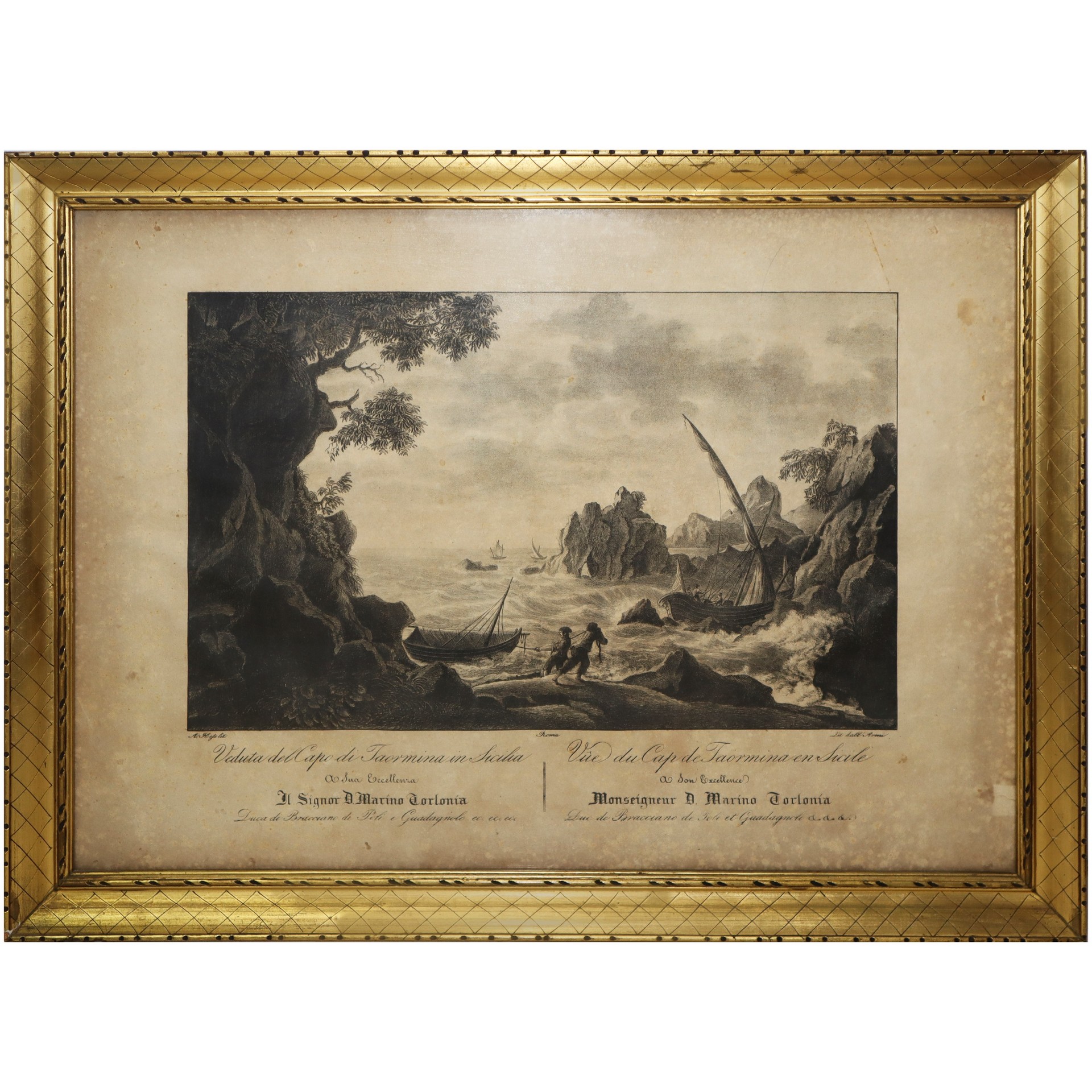 Veduta di Capo Taormina in Sicilia In cornice cm 50 x 65 Incisione all'acquaforte