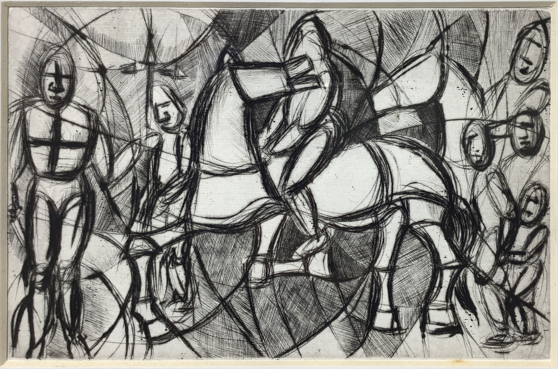 Cavalieri crociati a cavallo Mm 160x240, in cornice cm 27x36 Incisione ad acquaforte