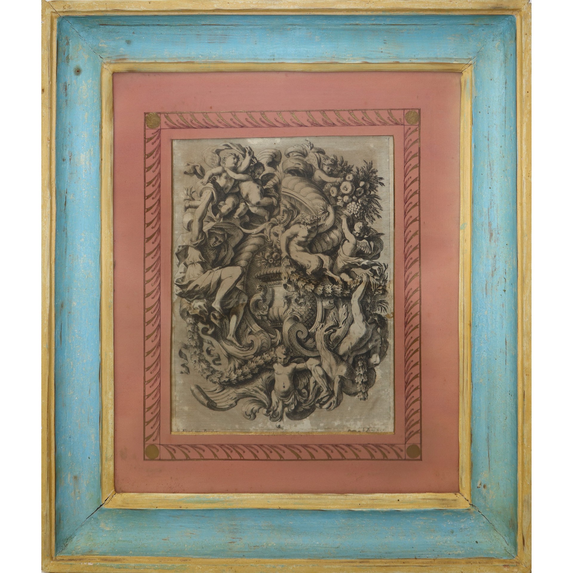 Lot 116 | Jean Le Pautre (Parigi 1618-Parigi 1682) - Putti, fauni e ghirlande di fiori e di frutta in cornice di legno laccato