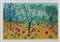 Cascella Michele La campagna a Rapino acquatinta a 18 colori su carta, cm. 60,5x78,5, es. prova d'autore firmata in basso a destra, certificato di autenticità della Edizioni Bora al retro