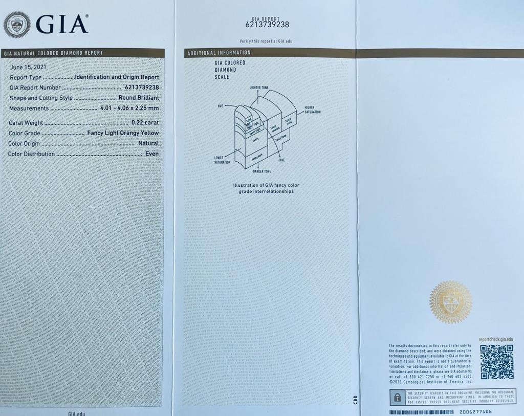 DIAMANTE NATURAL POLISH 0,22 CT NATURAL FANCY CHIARO GIALLO ARANCIATO UNIFORME TAGLIO BRILLANTE - CERTIFICATO GIA - F10502B-2
