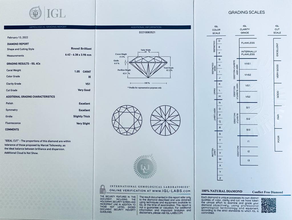 DIAMANTE 1,05 CT H - VS1 - TAGLIO BRILLANTE - CERTIFICATO IGL - C30416