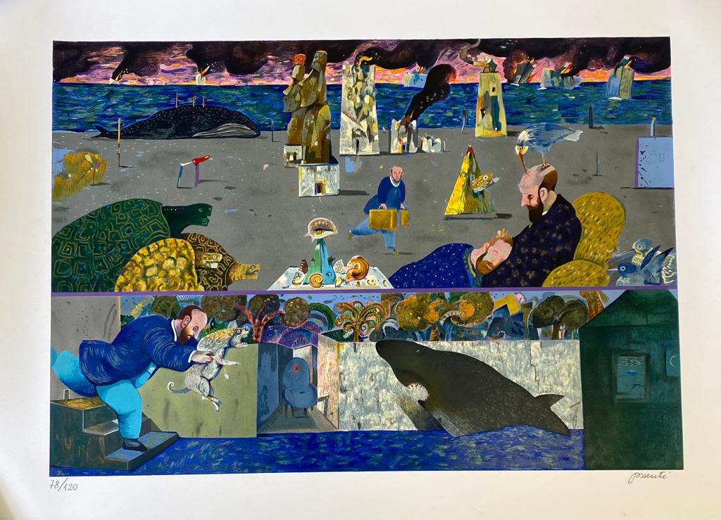 "Spiaggia" serigrafia su carta, cm 90×120 firmata in basso a destra
