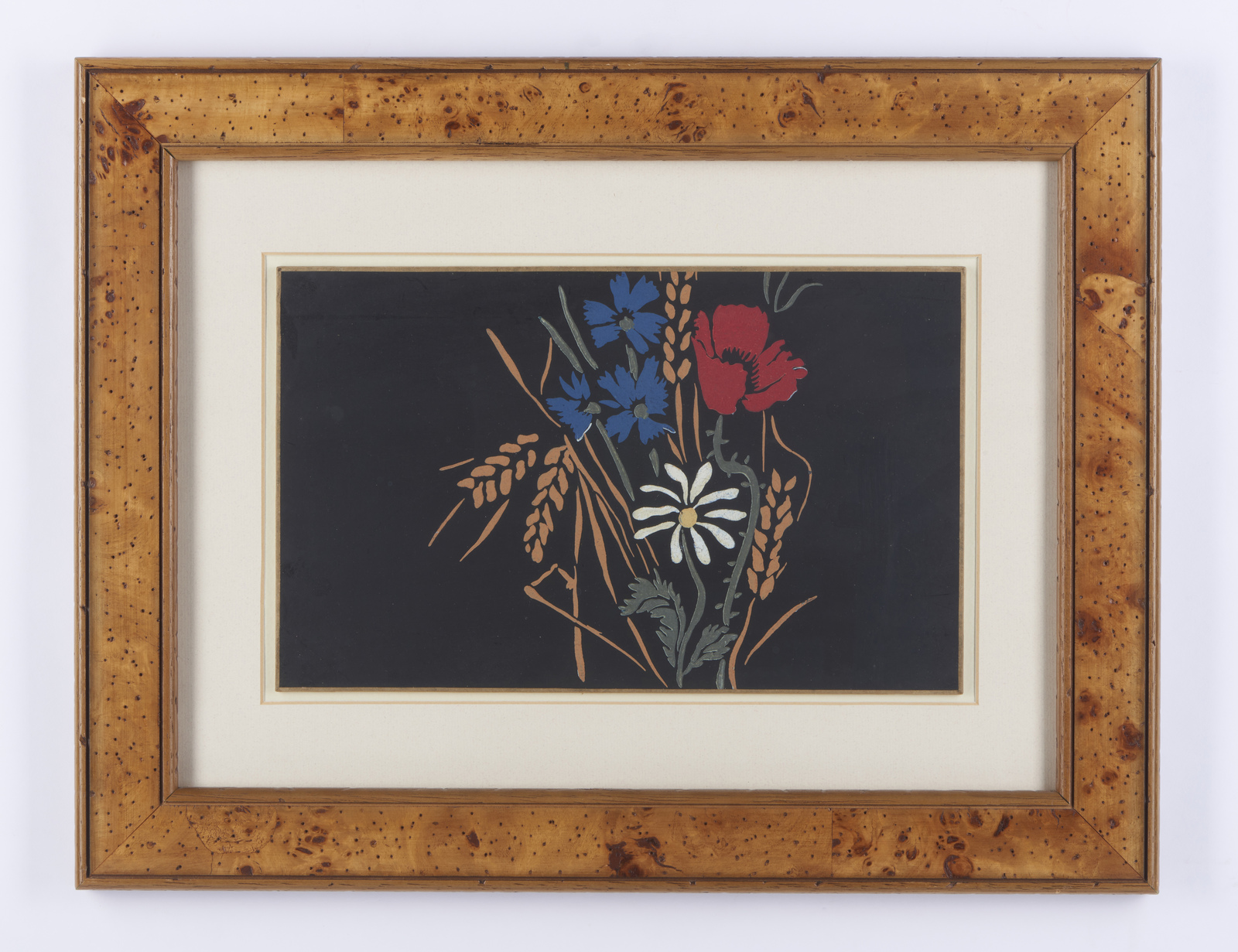 DUFY RAOUL (1877 - 1953) Senza titolo. Pochoir su carta. Cm 28,40 x 17,60. Realizzata dalla maison Bianchini-Férier di Lione. Autentica su fotografia a cura di Fanny Guillon-Lafaille, riportante il relativo numero d'inventario. L'opera verrà inserita nel Catalogue raisonné des projets de tissus de Raoul Dufy, Paris attualmente in preparazione a cura di Fanny Guillon - Laffaille. Lievi difetti. Cornice presente