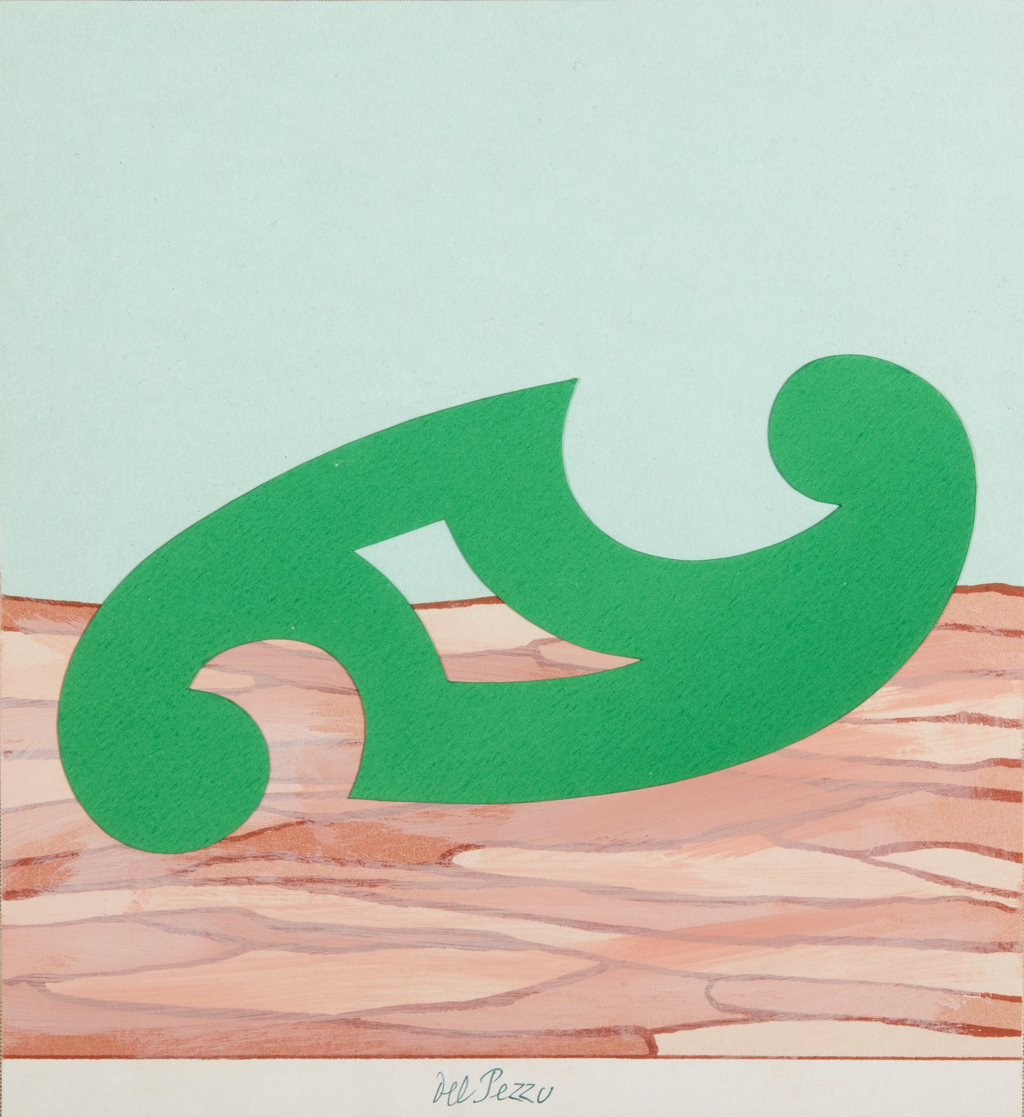 DEL PEZZO LUCIO (n. 1933) Geometrie. Tempera e collage di carte su cartone. Cm 23,50 x 21,50. Firma in basso al centro. Autentica dell'artista su fotografia. Certificato di provenienza Galleria Allegrini, Brescia. Cornice presente