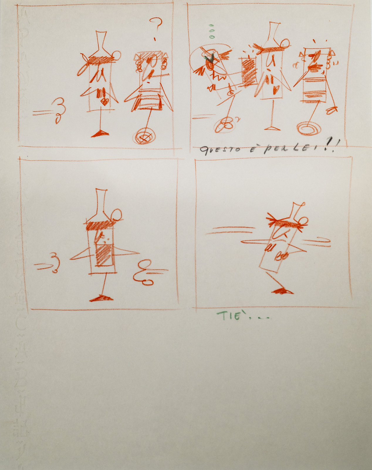 LODOLO FILM Dalla serie sketches dei Posteros. Lotto composto da n.4 fogli. Matita e pastello su carta. Cm 22,00 x 28,00. Il lotto proviene dagli archivi dei collaboratori della Lodolo Film, storica società di spot pubblicitari e di animazione italiana nata verso le fine degli anni 50. I Posteros, personaggi di fantasia, primitivi del futuro, nascono dalla collaborazione di Pino Pascali con la Lodolo film nel1958, un anno prima del suo diploma all’Accademia di Belle Arti di Roma; sodalizio che durò sino al 1967. Sandro Lodolo, titolare della casa di produzione pubblicitaria, e Pino Pascali, nel ruolo di creativo, realizzarono innumerevoli spot e cartoons pubblicitari. Gli Intermezzi che videro proprio i Posteros come protagonisti furono eseguiti , sia in bianco e nero che a colori, nel 1962 e nel 1968, anno della morte di Pascali, quando vennero ripresi da Lodolo come studio per i personaggi di un nuovo contenitore pubblicitario del secondo programma della Rai.