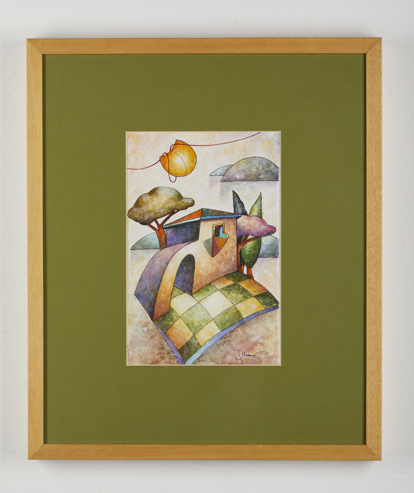 NESI FRANCESCO (n. 1952) La barca dei sogni. Tecnica mista e acquerello su carta. Cm 18,00 x 28,00. Firma in basso a destra. Titolo al retro. Cornice presente