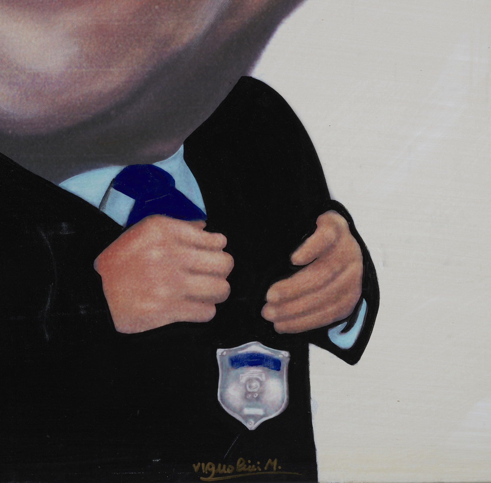 VIGNOLINI MARCO (n. 1941) Di Pietro. . 2016. Tecnica mista su tela. Cm 87,00 x 125,00. Firma in basso al centro. Al retro cartiglio descrittivo. Lievi difetti.
