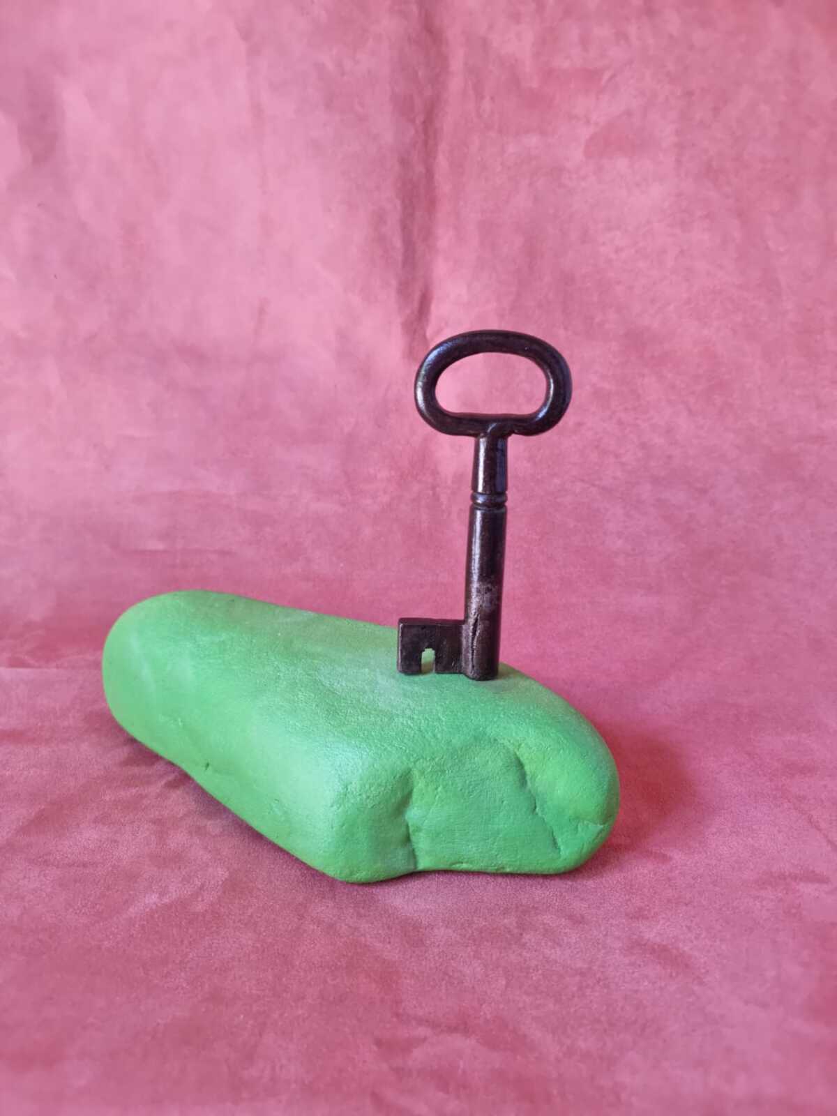 POLLIO PIERLUIGI (n. 1956) La soluzione. 2023. Scultura. Cm 29,00 x 28,50 x 11,00. Sotto la base titolo, firma e anno. Cartiglio descrittivo con firma e timbro dell'artista.