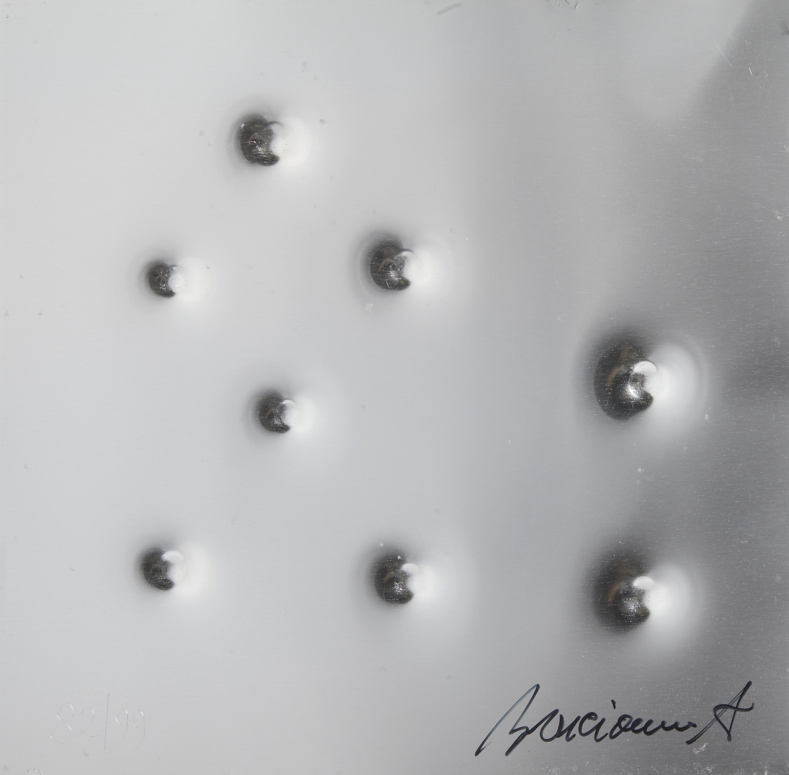 BRESCIANINI ANGELO (1948 - 2016) Senza titolo. Multiplo in metallo. Cm 16,00 x 16,00. 82/99. Al retro tiratura a incisione e firma a pennarello. Autentica dell'artista su fotografia a cura della Galleria Minotauro Fine Art, Palazzolo sull'Oglio (Bs).