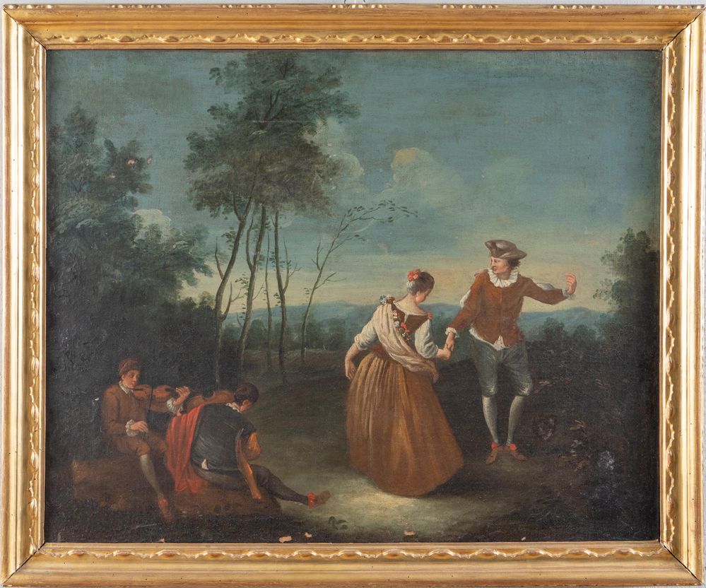 Maestro del XVIII secolo. "Scena campestre". Olio su tela. Cm 65x81.