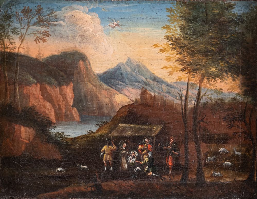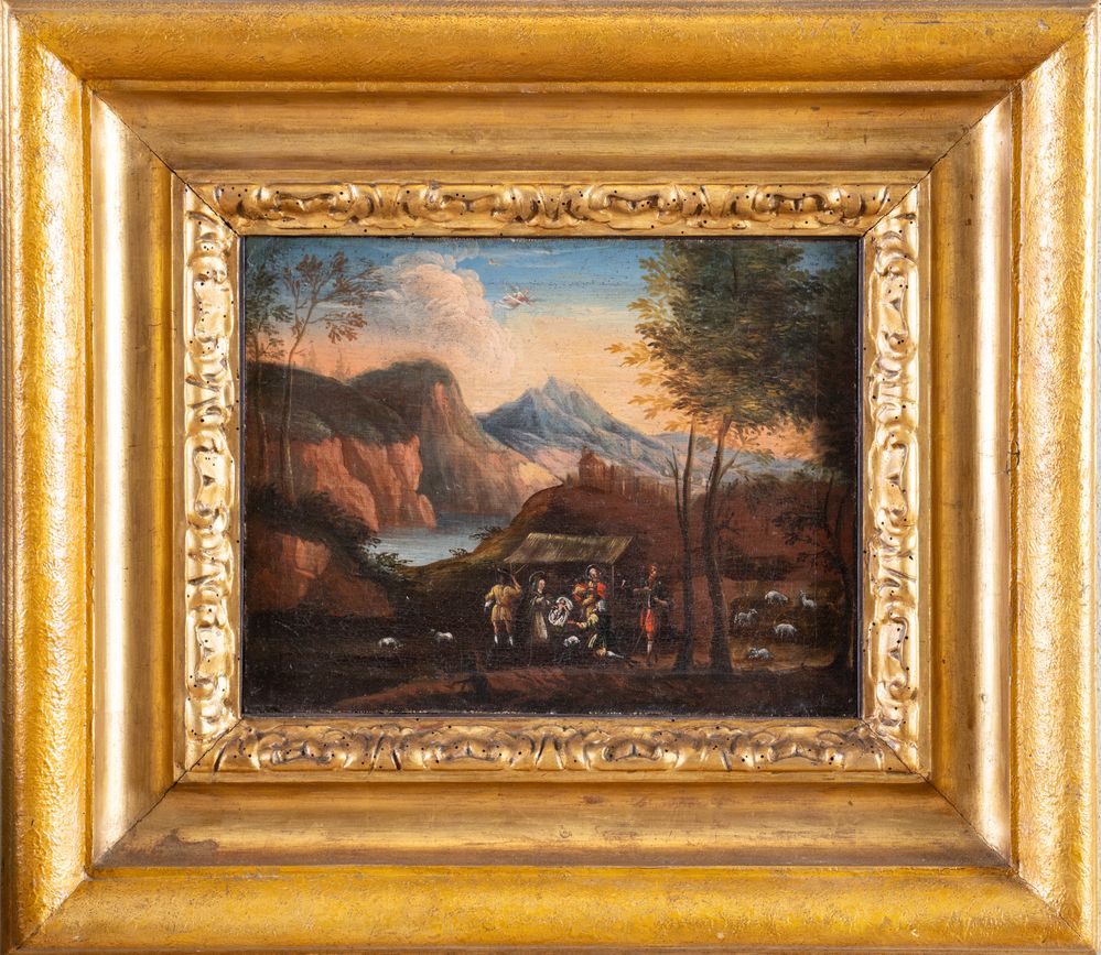 Lot 38 | Maestro fiammingo del XVII secolo. "Natività". Olio su tela. Cm 28x36,5.