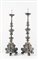 COPPIA DI CANDELABRI IN METALLO sbalzato e ARGENTATO. Italia, XVIII secolo....